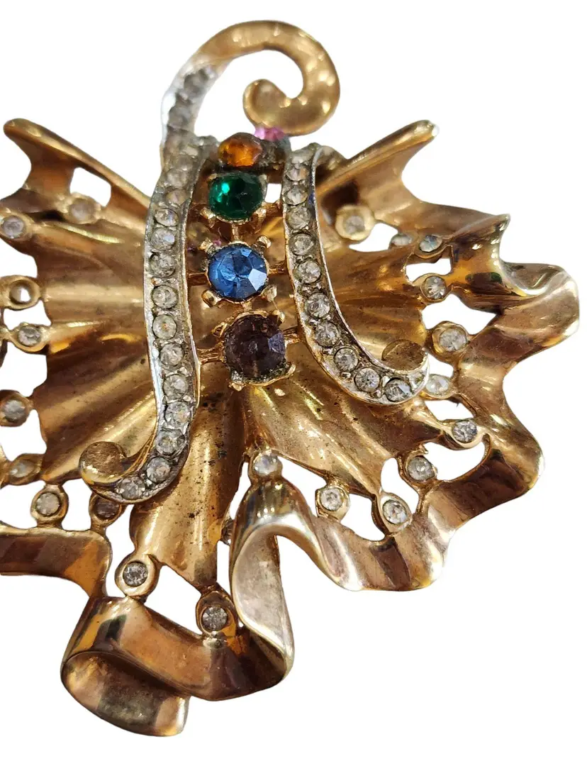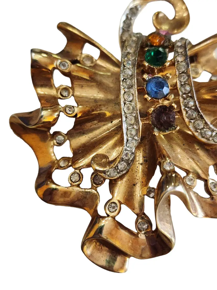 Early Deco Dimensional Jeweled Brooch Coro? (A1577)
