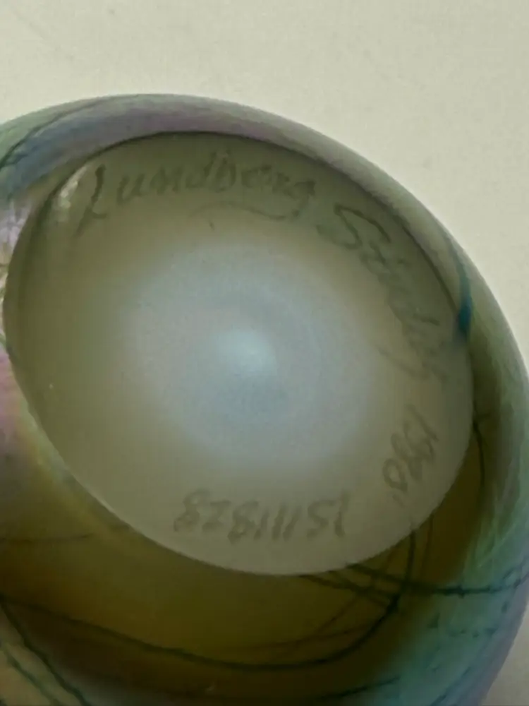 Measures 2.5โ wide, 2.25โ tall Slight UV Glow No chips or cracks Signed Lundberg Studios 1980 LS111828