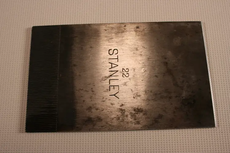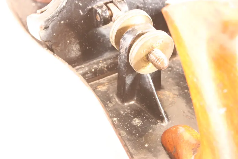 Good condition, no crack or breaks in body. Very good #22 toothing blade. Good knob & tote. "PATENT AUG. 31-58" on one nut.
