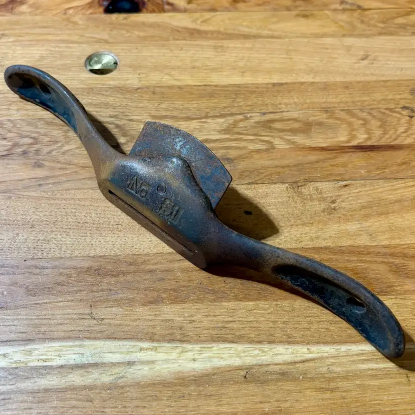 Early Stanley Rule & Level Co. No. 51 Spoke Shave. New Britain, Connecticut. Overall decent shape with some light rusting. Would benefit from clean-up/restoration before use.