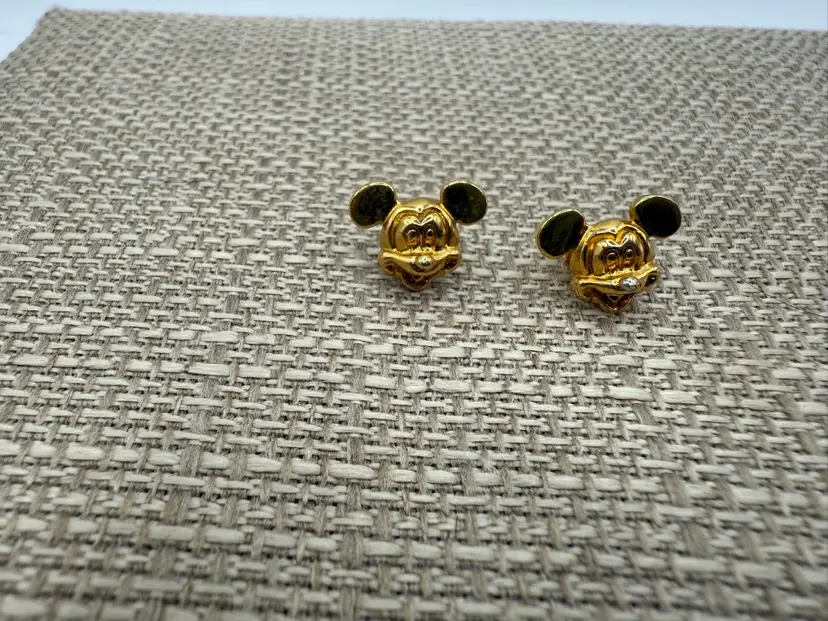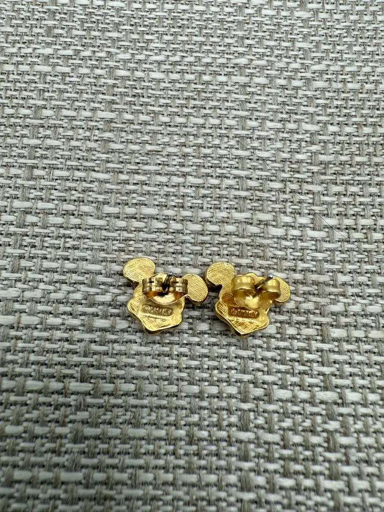 Gold tone Mickey Mouse post earrings. In good condition. Measures 1/4 inch Please note the ears showed up black but are actually gold.