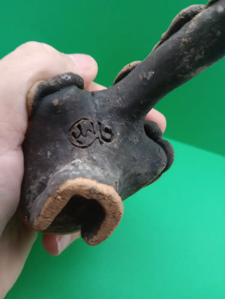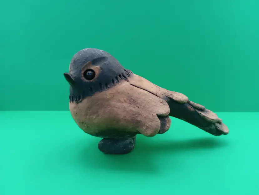 This is a wonderful earthenware studio pottery bird. It's signed by the artist -- I think it may be Mark Hines -- and is in excellent condition with no noted damage.