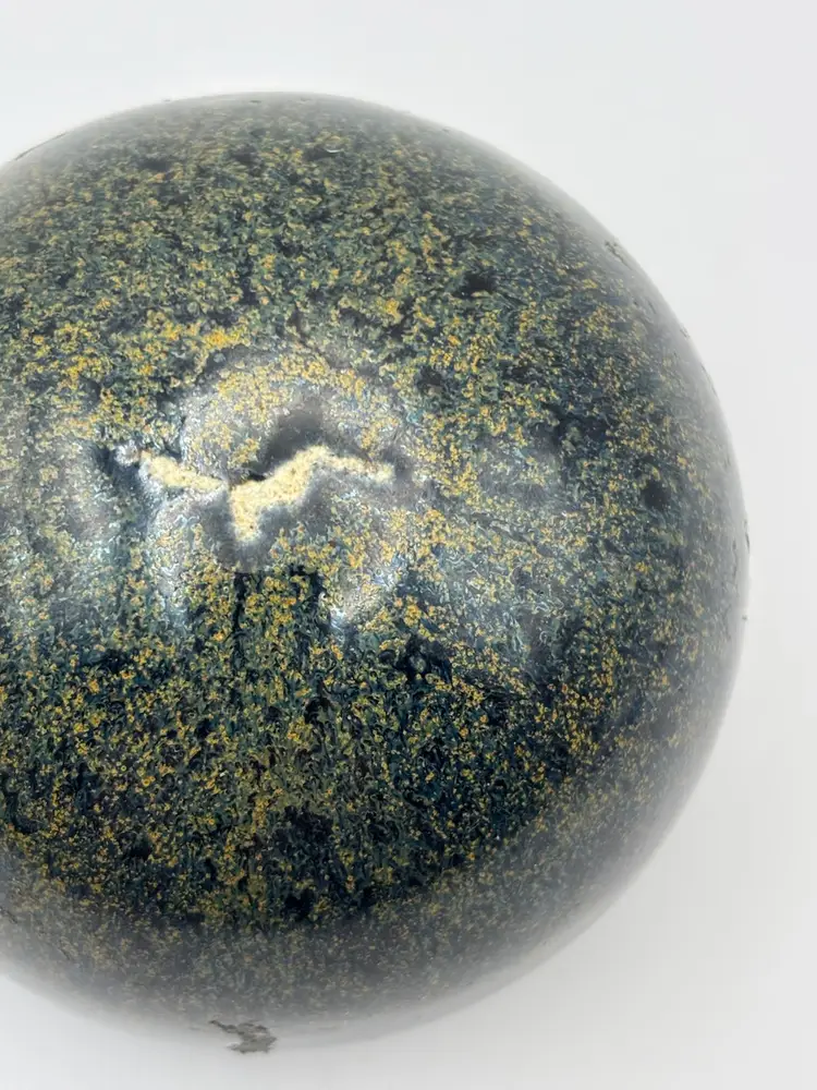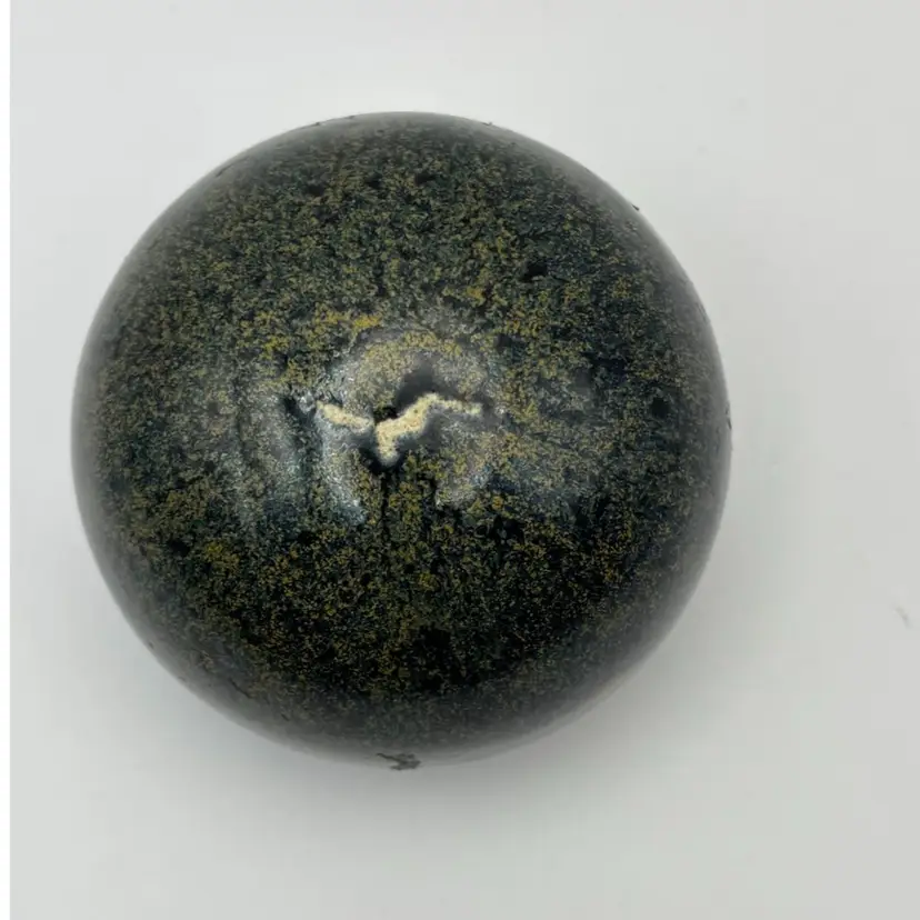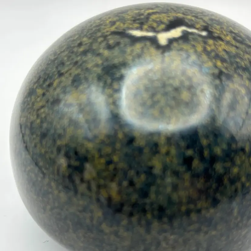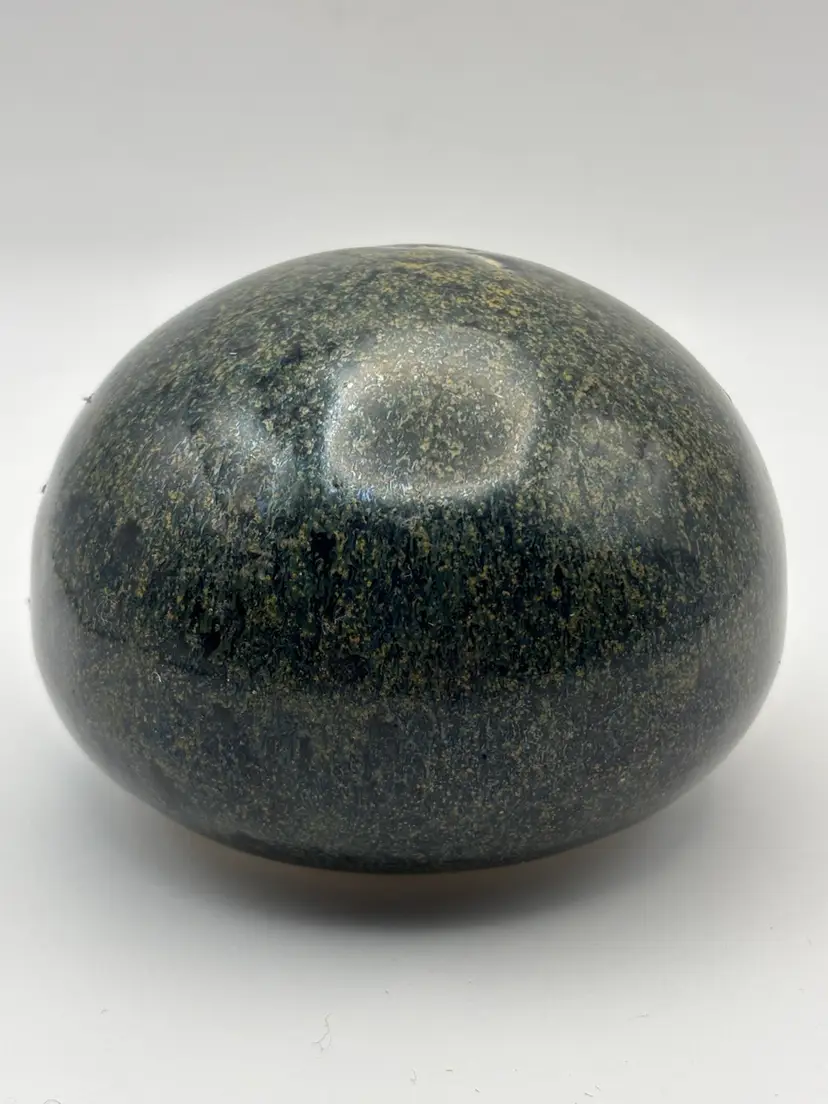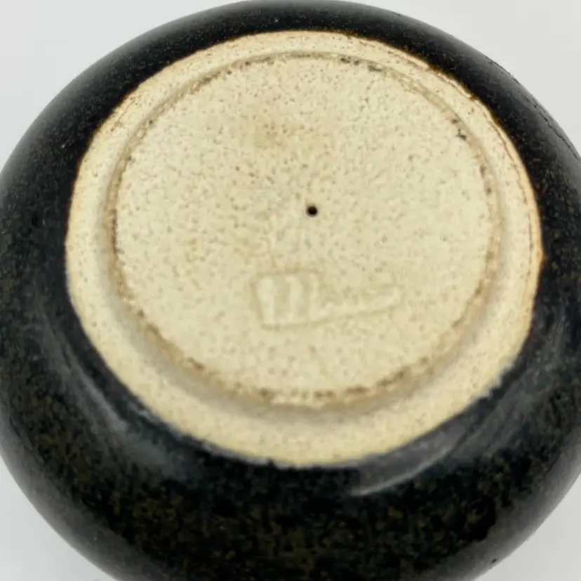 Very earthy style pottery round paperweight stamped Messe? No chips or cracks 2” tall 3” diameter