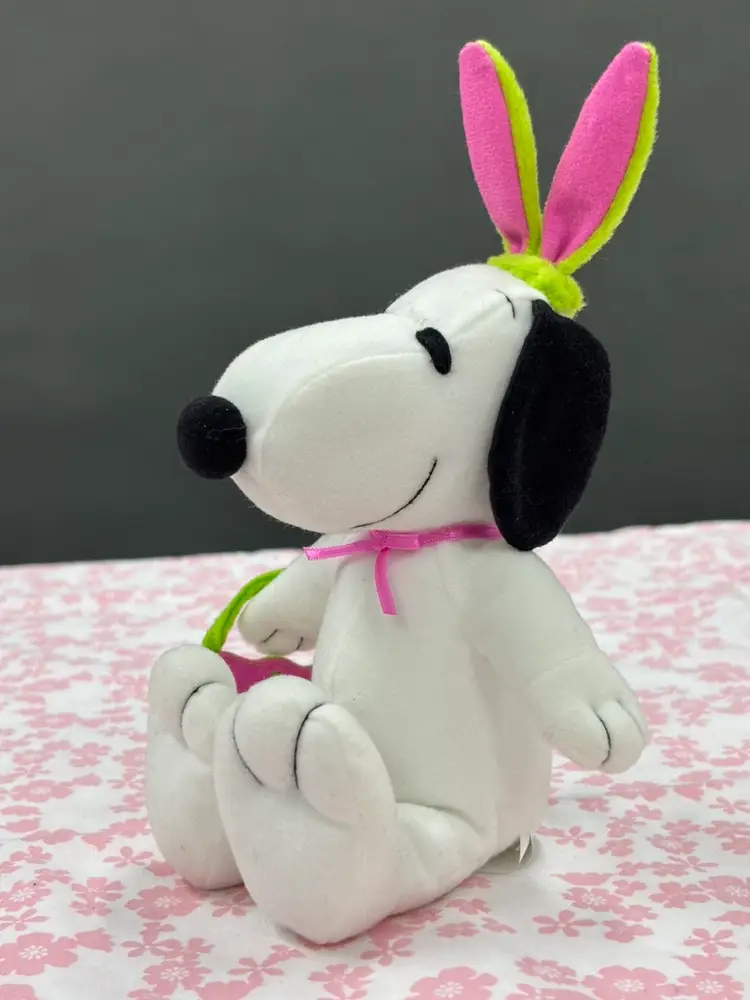 Vintage Snoopy plush made by Determined Productions for Whitmans. This one has green and pink ears and a matching Easter basket. Approximately 6 inches tall when sitting without the ears, and 8” with the ears. Would be a super cute addition to any collection!