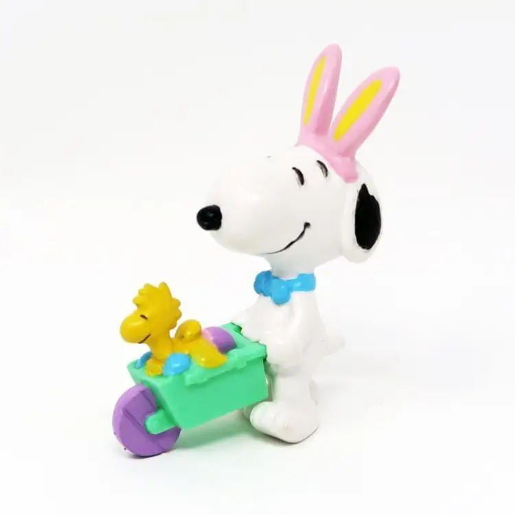 Celebrate Easter with this adorable Snoopy & Woodstock figurine. Featuring Snoopy in pink bunny ears and Woodstock in a colorful cart, it's a delightful addition to any Peanuts collection. Perfect for spreading springtime cheer! Made by Whitman's Chocolates and about 3" tall.