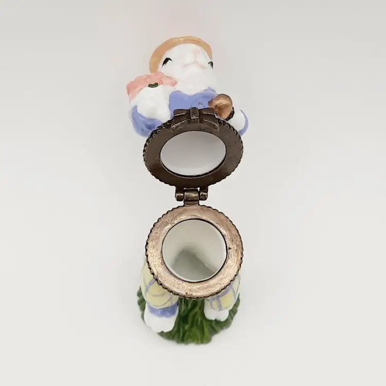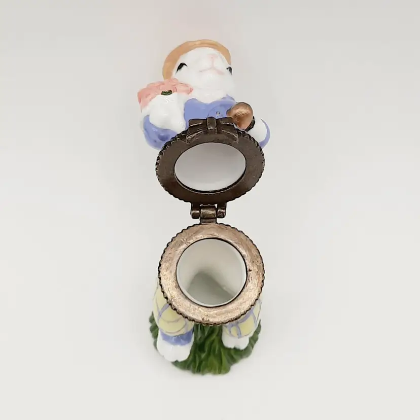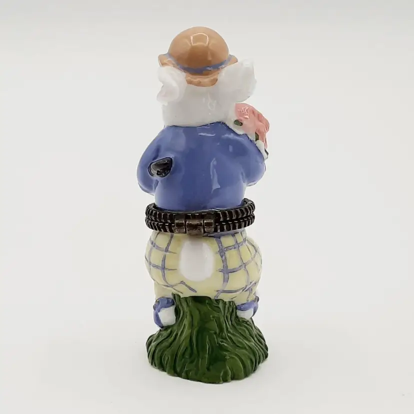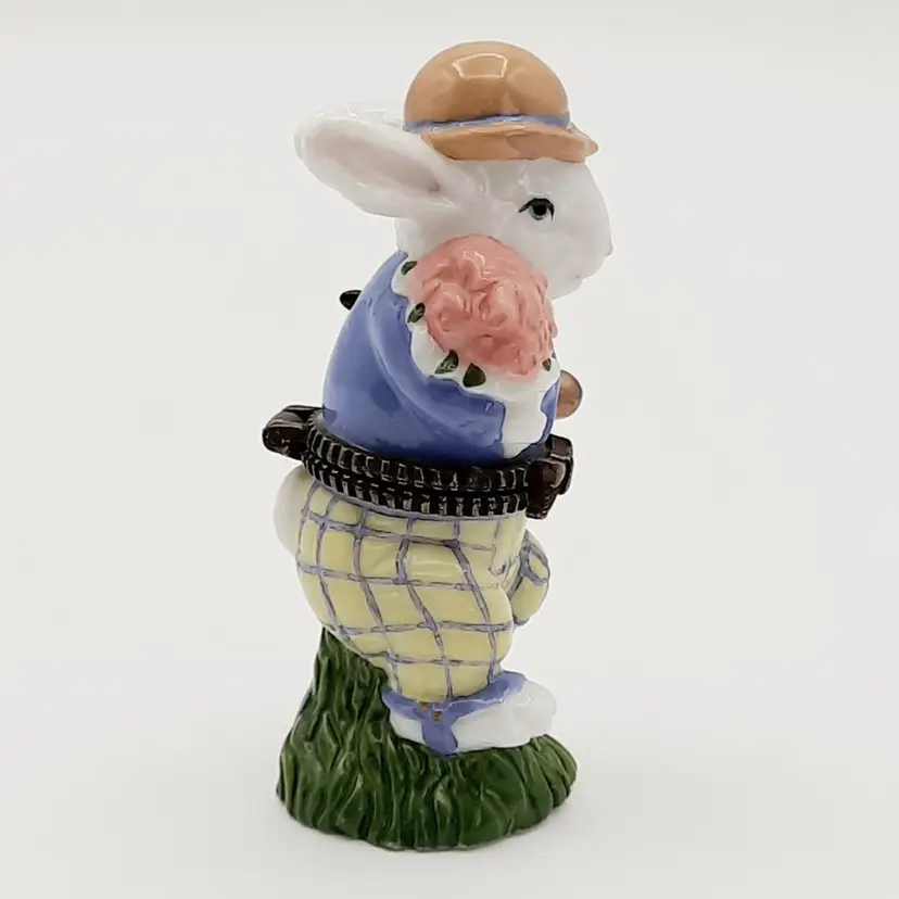 This dapper fella carrying his bouquet of flowers is 2 3/4"H x 1"W, great condition with tiny paint chip on bottom edge
