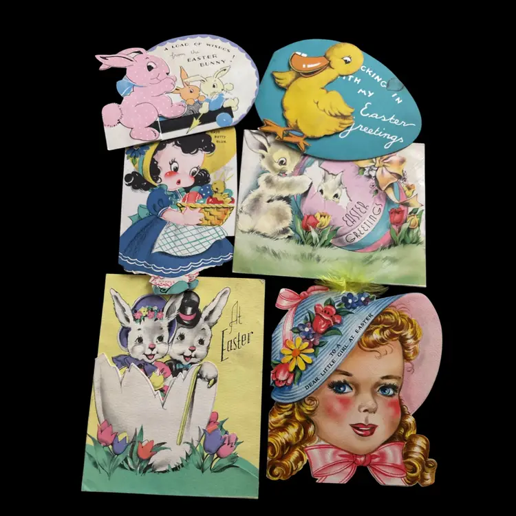 Fun Easter card lot. In vintage condition, used Various designs and sizes ~3-4”