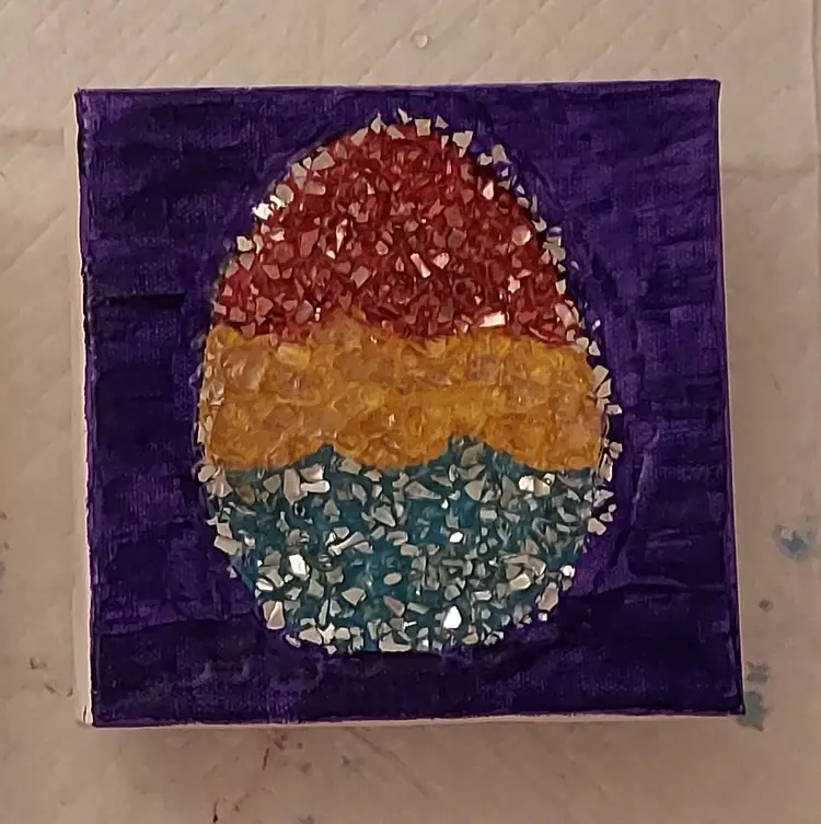 Easter egg crushed glass resin art painting on canvas. 6x6 in size. Makes a nice Easter gift or decor.