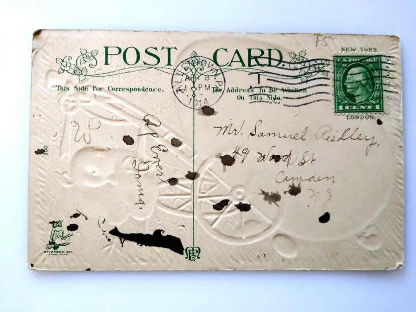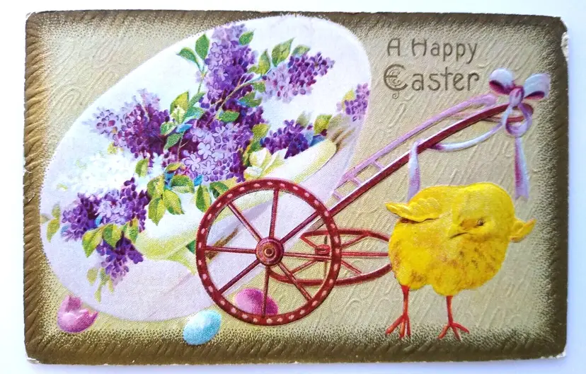 Unit of Sale: Single Unit Artist: Unknown Number of Items in Set: 1 Occasion: Easter Size: Standard (5.5 x 3.5 in) Custom Bundle: No Material: Paper Year Manufactured: 1914 Original/Licensed Reprint: Original Brand/Publisher: Gold Medal Art Subject: Fantasy Type: Printed (Lithograph) Era: Pre-War (Pre-1914) Theme: Art, Baby Chick, Basket, Egg, Fantasy, Greetings, Holiday Features: Divided Back, Embossed Time Period Manufactured: 1900-1919 Country/Region of Manufacture: Unknown Postage Condition: Posted
