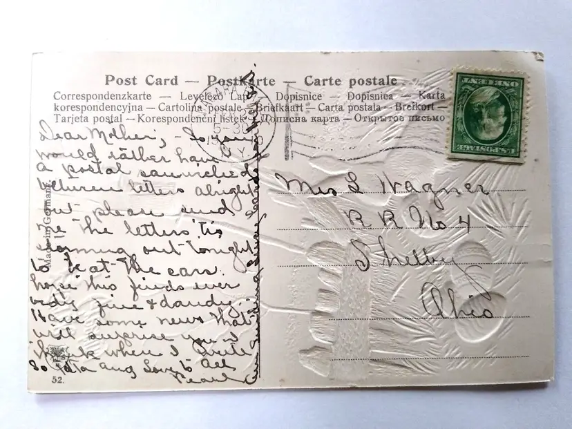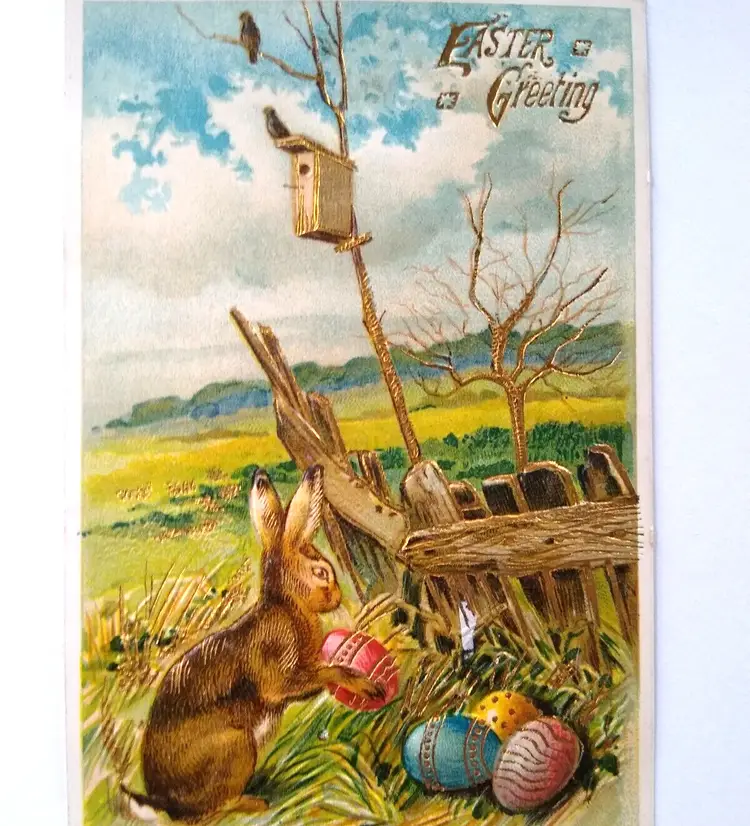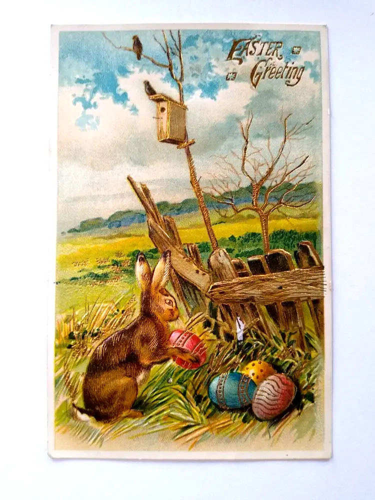 Number of Items in Set: 1 Unit of Sale: Single Unit Artist: Unknown Occasion: Easter Size: Standard (5.5 x 3.5 in) Signed: No Custom Bundle: No Year Manufactured: 1910 Material: Paper Original/Licensed Reprint: Original Brand/Publisher: Unbranded Subject: Rabbit Personalize: No Type: Printed (Lithograph) Era: Divided Back (1907-1915) Theme: Art, Fantasy, Greetings, Holiday, Eggs, Birds, Birdhouse, Painted Eggs, Gold Trim Features: Divided Back, Embossed Time Period Manufactured: 1900-1919 Country/Region of Manufacture: Germany Postage Condition: Posted
