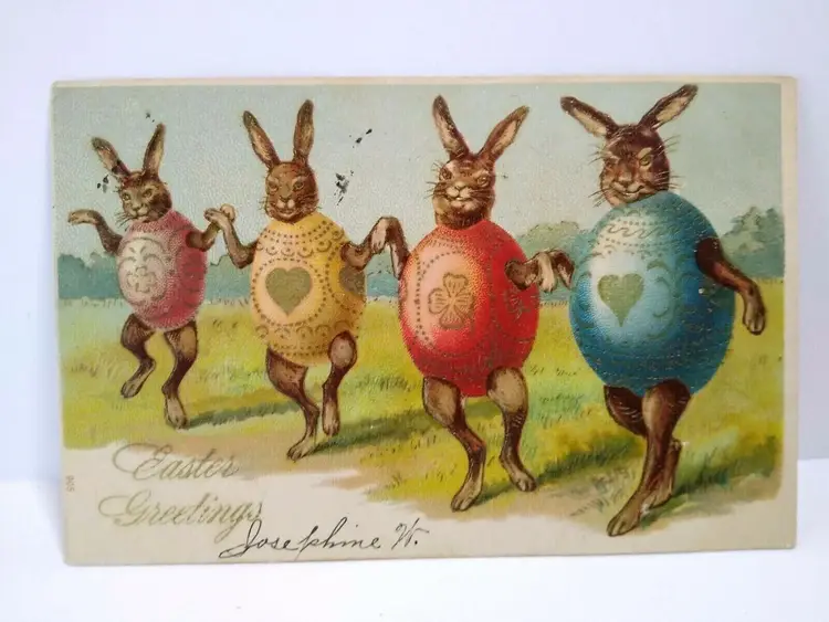 Size: Standard (5.5 x 3.5 in) Custom Bundle: No Type: Printed (Lithograph) Number of Items in Set: 1 Signed: No Original/Licensed Reprint: Original Occasion: Easter Time Period Manufactured: 1900-1919 Unit of Sale: Single Unit Era: Pre-War (Pre-1914) Artist: Unknown Country/Region of Manufacture: Germany Material: Paper Theme: Anthropomorphic, Rabbit, Eggs, Animals, Art, Fantasy, Greetings, Holiday Features: Embossed, Undivided Back Subject: Rabbit Postage Condition: Posted Brand/Publisher: Otto Schloss Year Manufactured: 1910