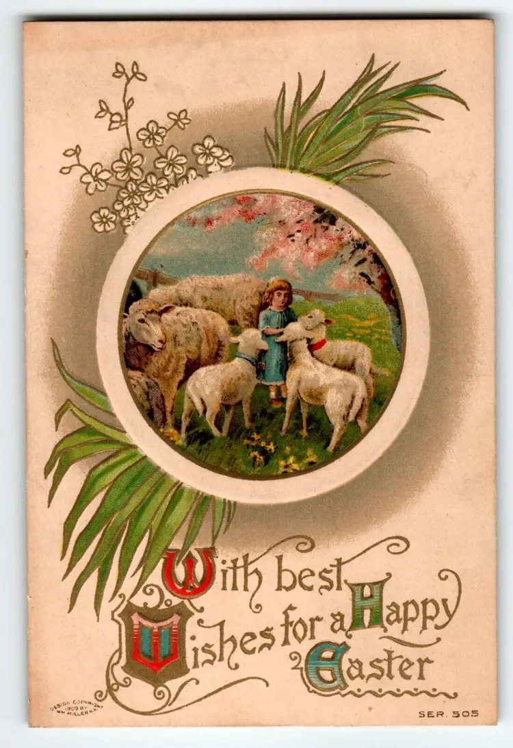 Number of Items in Set: 1 Unit of Sale: Single Unit Artist: Unknown Occasion: Easter Size: Standard (5.5 x 3.5 in) Signed: No Custom Bundle: No Material: Paper Year Manufactured: 1909 Original/Licensed Reprint: Original Brand/Publisher: WM Miller Subject: Sheep Personalize: No Type: Printed (Lithograph) Unit Type: Unit Era: Pre-War (Pre-1914) Theme: Animals, Art, Greetings, Holiday Features: Divided Back, Embossed Time Period Manufactured: 1900-1919 Country/Region of Manufacture: United States Postage Condition: Unposted