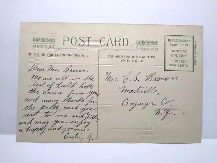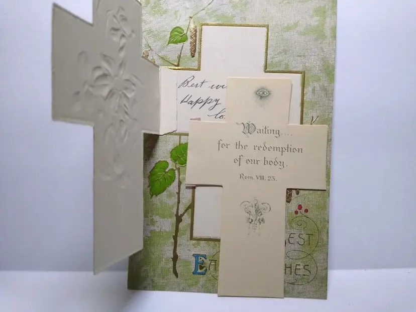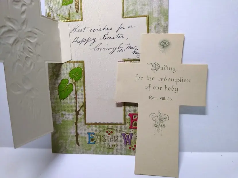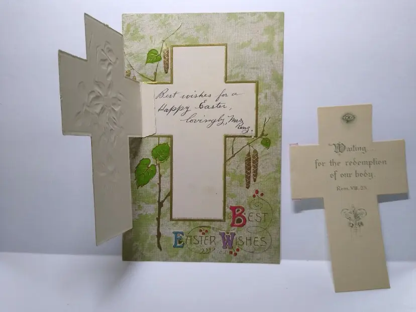 Size: Standard (5.5 x 3.5 in) Custom Bundle: No Personalize: No Type: Printed (Lithograph) Year Manufactured: 1909 Number of Items in Set: 1 Signed: No Original/Licensed Reprint: Original Occasion: Easter Time Period Manufactured: 1900-1919 Unit of Sale: Single Unit Era: Pre-War (Pre-1914) Artist: Unknown Country/Region of Manufacture: Germany Material: Paper Theme: Art, Greetings, Holiday, Religious, Flowers & Plants, Lilies Features: Divided Back, Embossed, Fold-Out Subject: Cross Postage Condition: Unposted Brand/Publisher: Unknown Franchise: Unknown