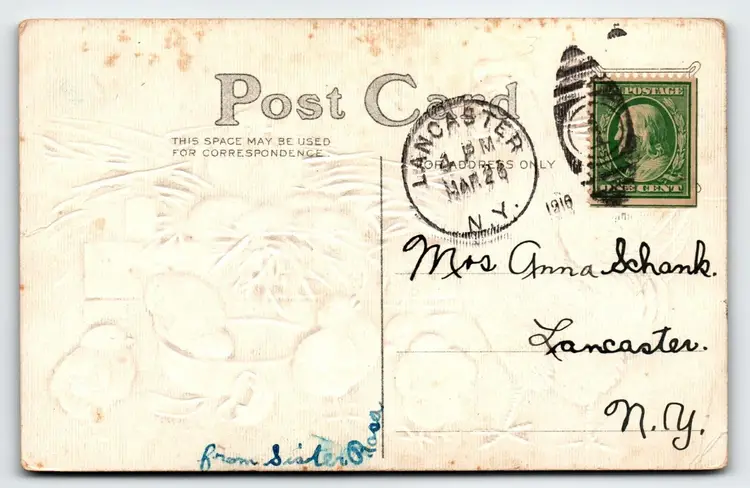 Unit of Sale: Single Unit Artist: Unknown Number of Items in Set: 1 Occasion: Easter Size: Standard (5.5 x 3.5 in) Custom Bundle: No Material: Paper Year Manufactured: 1910 Original/Licensed Reprint: Original Brand/Publisher: Unbranded Subject: Rooster Type: Printed (Lithograph) Unit Type: Unit Era: Pre-War (Pre-1914) Theme: Art, Greetings, Holiday Features: Divided Back, Embossed Time Period Manufactured: 1900-1919 Country/Region of Manufacture: Unknown Postage Condition: Posted