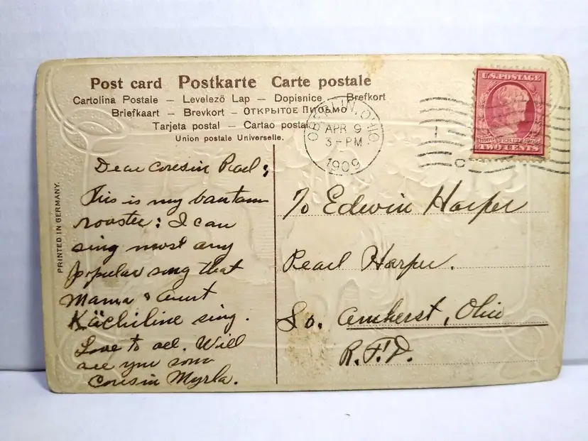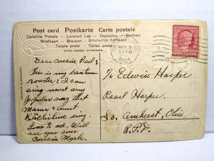 Number of Items in Set: 1 Unit of Sale: Single Unit Artist: Unknown Occasion: Easter Size: Standard (5.5 x 3.5 in) Signed: No Custom Bundle: No Year Manufactured: 1909 Material: Paper Original/Licensed Reprint: Original Brand/Publisher: Unbranded Subject: Roosters Personalize: No Type: Printed (Lithograph) Era: Divided Back (1907-1915) Theme: Art, Greetings, Holiday, Eggs, Roosters, Hens, Baby Chicks Features: Divided Back, Embossed Time Period Manufactured: 1900-1919 Country/Region of Manufacture: Germany Postage Condition: Posted