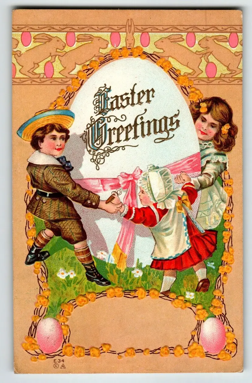 Unit of Sale: Single Unit Artist: Unknown Number of Items in Set: 1 Occasion: Easter Size: Standard (5.5 x 3.5 in) Custom Bundle: No Material: Paper Year Manufactured: 1913 Original/Licensed Reprint: Original Brand/Publisher: Nash Subject: Children Type: Printed (Lithograph) Unit Type: Unit Era: Pre-War (Pre-1914) Theme: Victorian Features: Embossed Time Period Manufactured: 1900-1919 Country/Region of Manufacture: Unknown Postage Condition: Posted