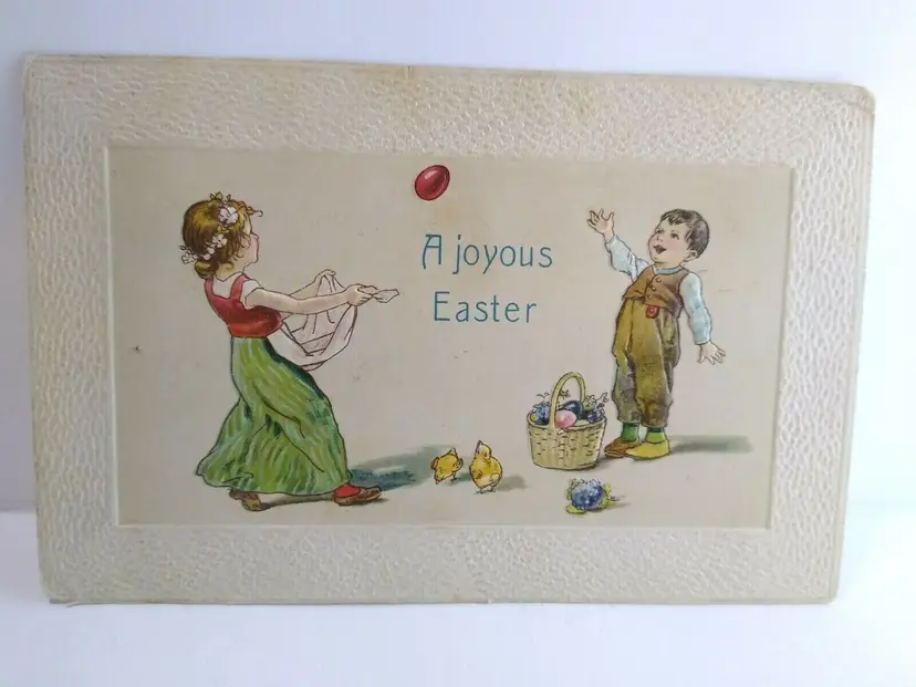 Size: Standard (5.5 x 3.5 in) Country/Region of Manufacture: Unknown Custom Bundle: No Material: Paper Theme: Animals, Art, Fantasy, Greetings, Holiday Type: Printed (Lithograph) Features: Divided Back Subject: Children Number of Items in Set: 1 Postage Condition: Posted Original/Licensed Reprint: Original Occasion: Easter Time Period Manufactured: 1900-1919 Unit of Sale: Single Unit Era: Pre-War (Pre-1914) Brand/Publisher: Unbranded Artist: Unknown Year Manufactured: 1910