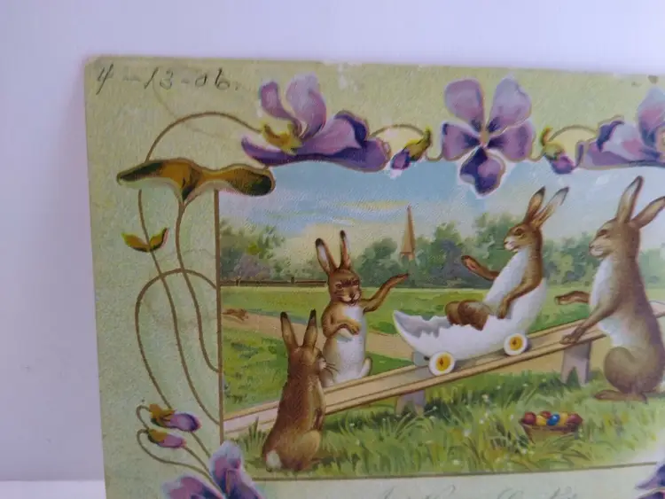 Size: Standard (5.5 x 3.5 in) Country/Region of Manufacture: Unknown Custom Bundle: No Material: Paper Theme: Animals, Art, Fantasy, Greetings, Holiday Type: Plain Back Features: Divided Back Subject: Rabbit Number of Items in Set: 1 Postage Condition: Unposted Original/Licensed Reprint: Original Occasion: Easter Time Period Manufactured: 1900-1919 Unit of Sale: Single Unit Era: Pre-War (Pre-1914) Brand/Publisher: Unbranded Artist: Unknown Year Manufactured: 1910