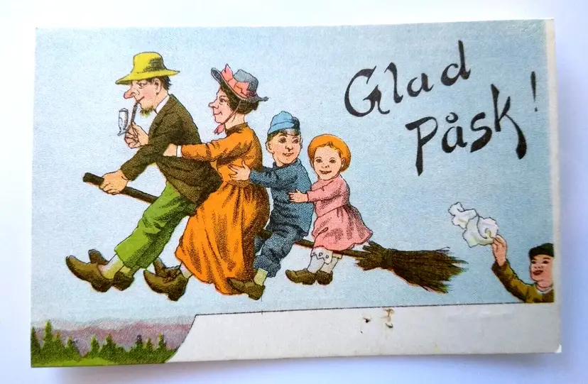 Number of Items in Set: 1 Unit of Sale: Single Unit Artist: Unknown Antique: Halloween Occasion: Easter Size: Standard (5.5 x 3.5 in) Signed: No Custom Bundle: No Material: Paper Year Manufactured: 1910 Original/Licensed Reprint: Original Brand/Publisher: Unbranded Subject: Witches Vintage: Halloween Postcard Type: Printed (Lithograph) Era: Pre-War (Pre-1914) Theme: Art, Barefoot, Broom, Brooms, Broomstick, Children & Infants, Easter, Easter Witch, Fantasy, Flying Broom, Folklore, Glad Pask, Greetings, Holiday, Witches Features: Divided Back Time Period Manufactured: 1900-1919 Country/Region of Manufacture: Sweden Postage Condition: Unposted Original: Postcard