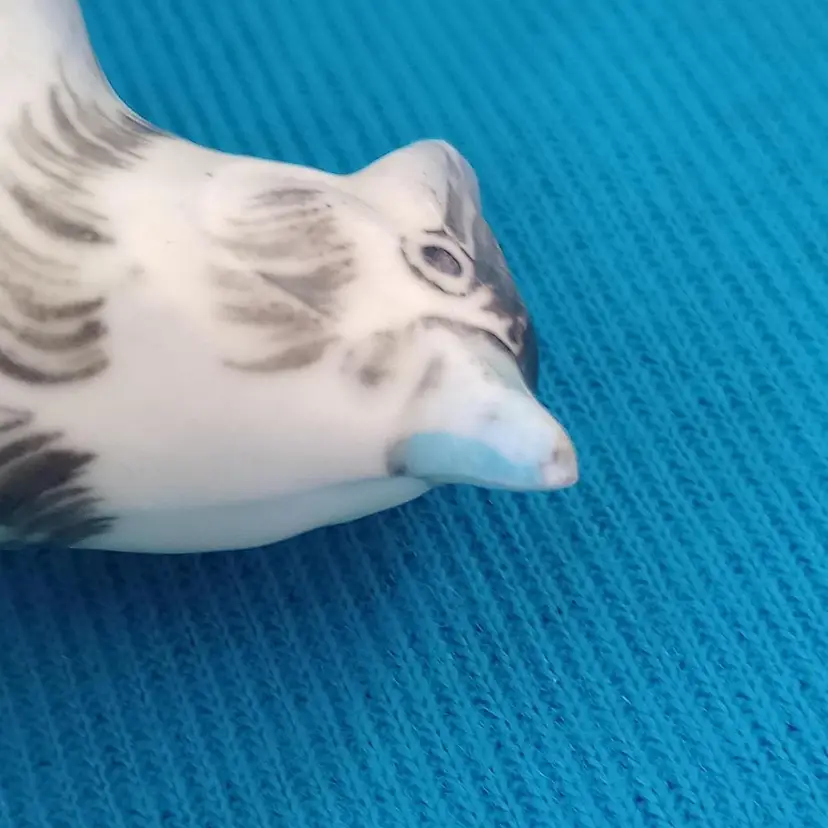 This beauty shows lots of charm and texture with its subtle color changes. He does have a chip on his bottom beak, on the inside of his right wing. The tail feathers are not even, but the indentation is smooth, so I think it's a design flaw. Got this at Mt Washington in the 60's.