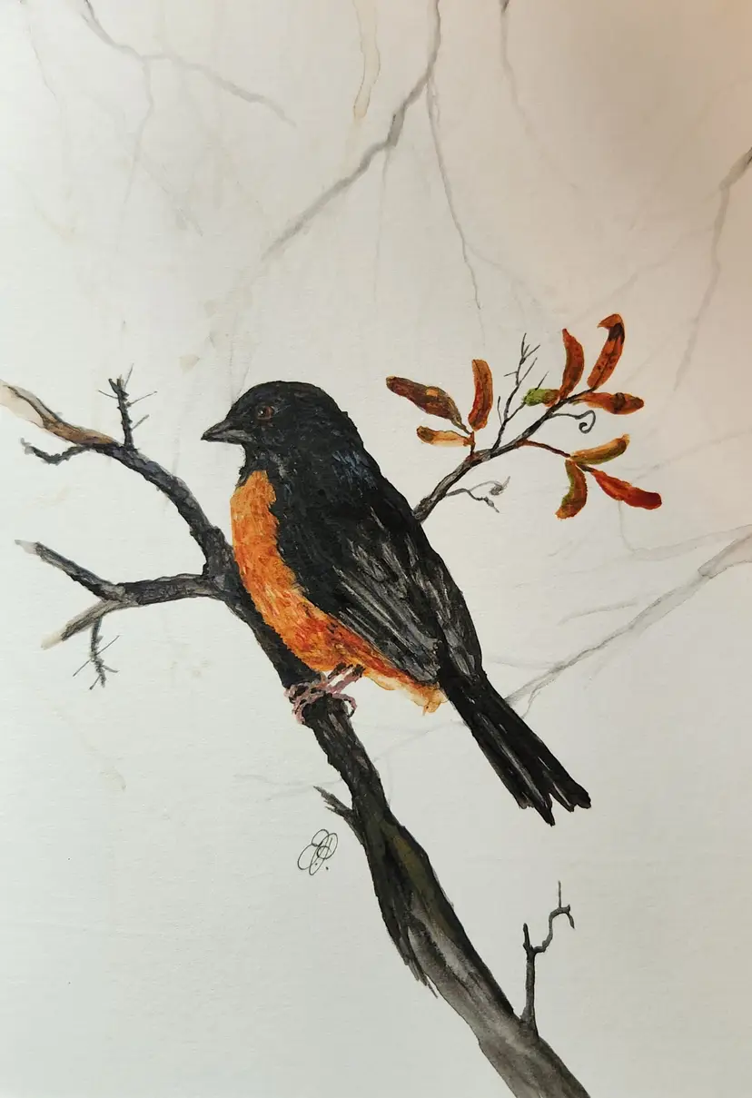 Eastern Towhee Original watercolor painting Signed By The Artist 5x7