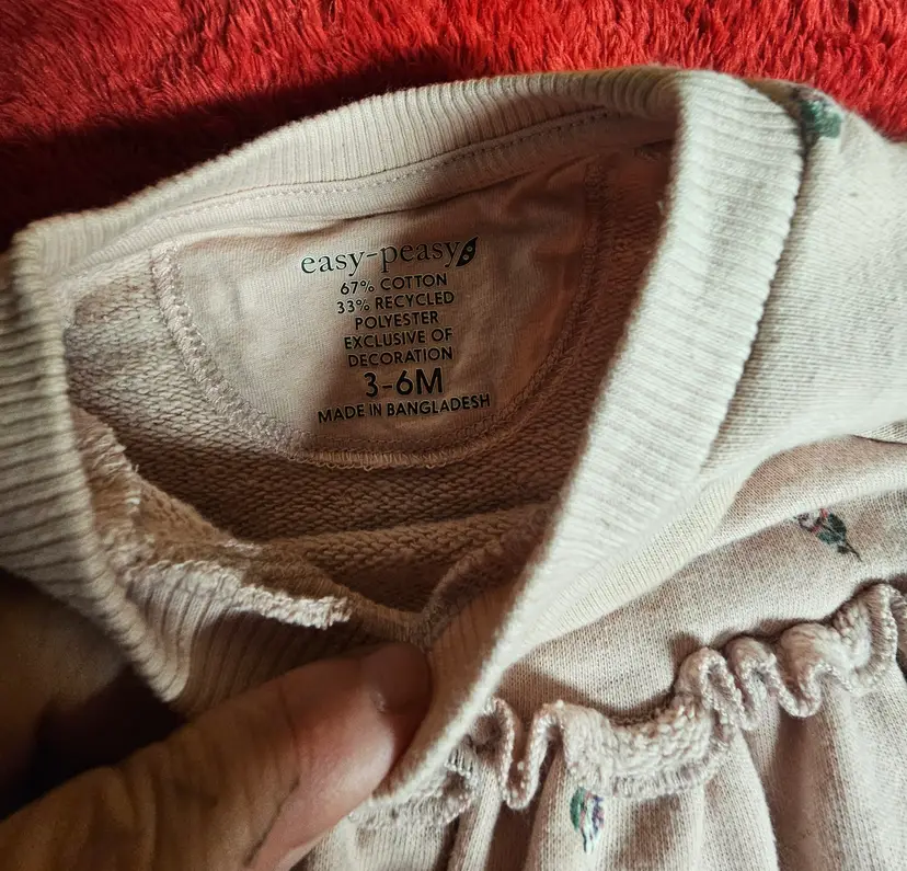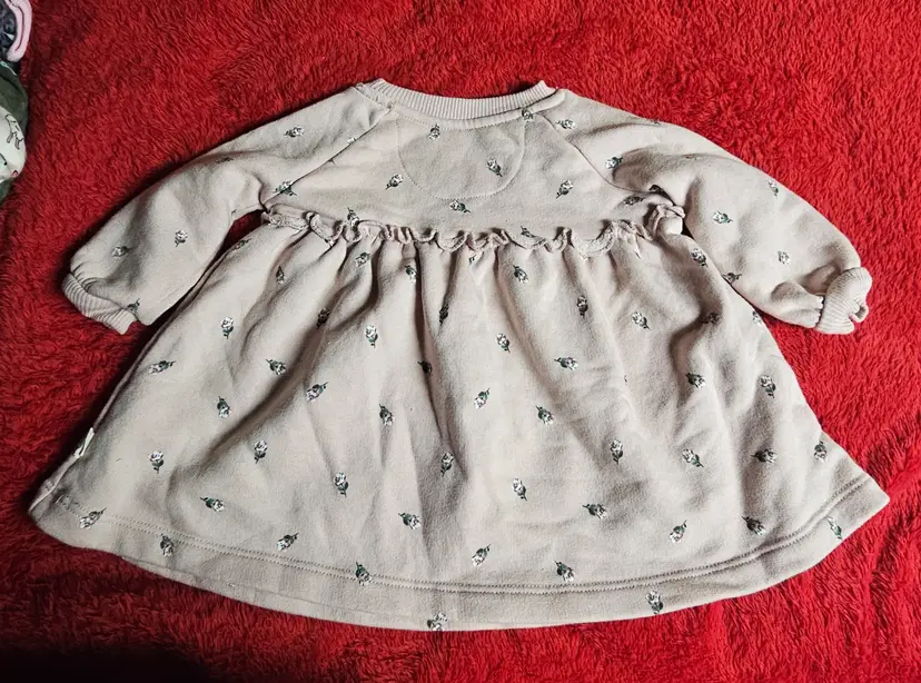 The Easy-Peasy Pink Floral Dress is a stylish and versatile option for baby girls aged 3-6 months. With its long sleeves and knee-length design, this sweater dress is perfect for various occasions such as parties, casual outings, or more formal events. Made from a blend of polyester and cotton, the dress features a lovely floral pattern in pink, making it a charming choice for the seasons of winter, fall, and spring. Easy to put on with its pullover closure, this dress from the Easy Peasy brand is a must-have addition to any baby girl's wardrobe.