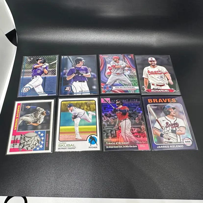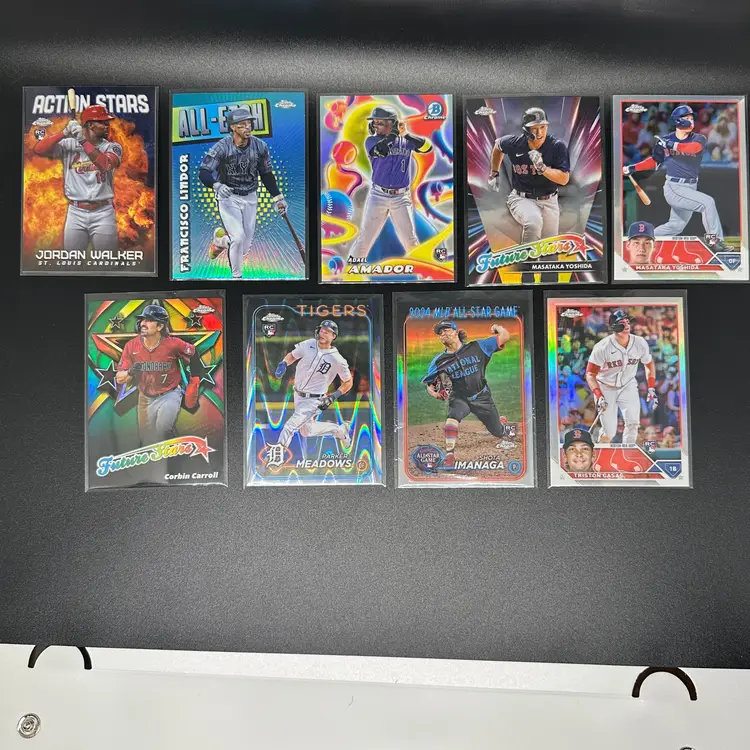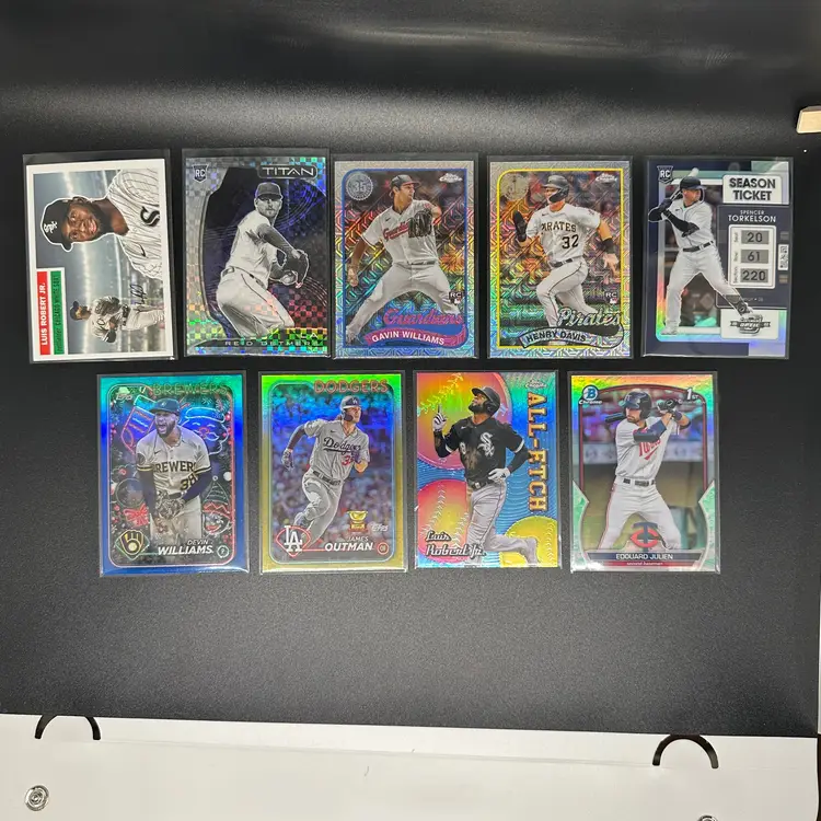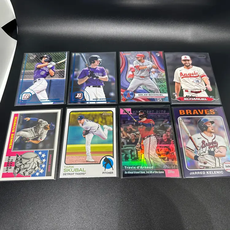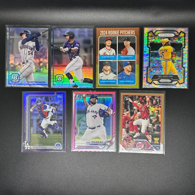 It's time to clean some things up and get them out of here. No time to relist or resort, so let it be your gain! You get every card in the first picture. The other picture are subsets of the 1st picture, including but not limited to: Alzolay RC Auto Image Variation 2022 Topps Heritage Benny Montgomery +Regular SP Tarik Skubal from 2022 Heritage Pink Travis d"arnaud Purple Jarred Kelenic Refractor Bowmans Best Nolan Schanuel Black Stadium Club Parallel Nolan Schanuel Refractor 2023 Topps Chrome Yoshida and Casas Ray Wave Parker Meadows Lunar Edouard Julien Bowman 1st White Back Topps Archives Luis Robert Jr. Gold Foil James Outman Rookie Cup /199 Tyler Whitaker /199 Warming Bernabel /499 Bill Madlock /699 2024 Rookie Pitchers /250 Austin Barnes /199 Alek manoah 311/2023 Joey Meneses Rookie