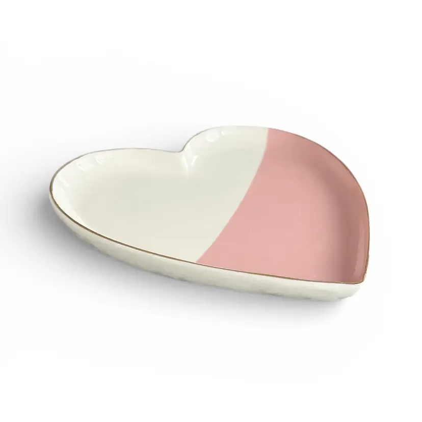 Add a touch of love to your table with this charming heart-shaped ceramic trinket dish. Perfect for serving treats or as a decorative piece. Size: 5” x 6”