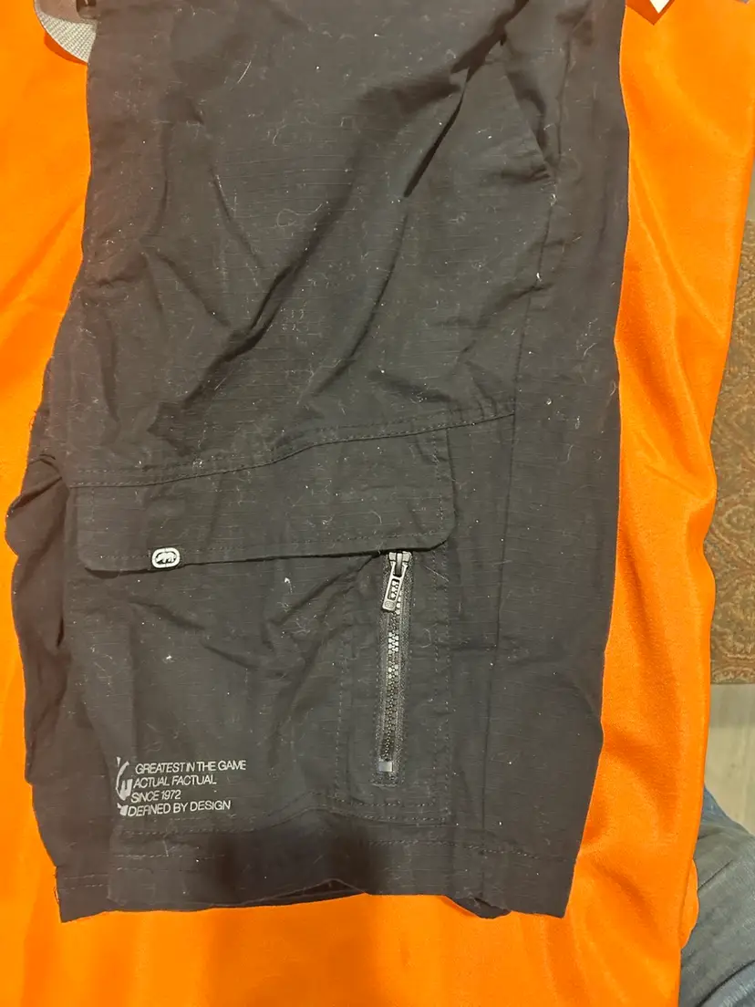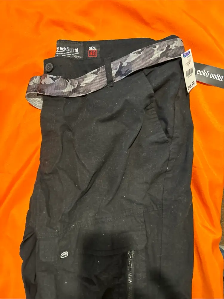 The Ecko Unltd Shorts for men in size 40 are perfect for outdoor activities with their black cargo style and belted ripstop pockets. Made from lightweight nylon material, these shorts are breathable and ideal for travel or casual occasions. The solid dark fabric wash adds a stylish touch to these versatile shorts, making them a great addition to your wardrobe for a hip-hop influenced outdoor look.