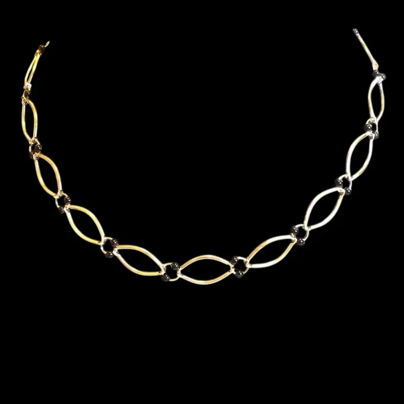 15-1/2” silver tone with black bead accents. #055