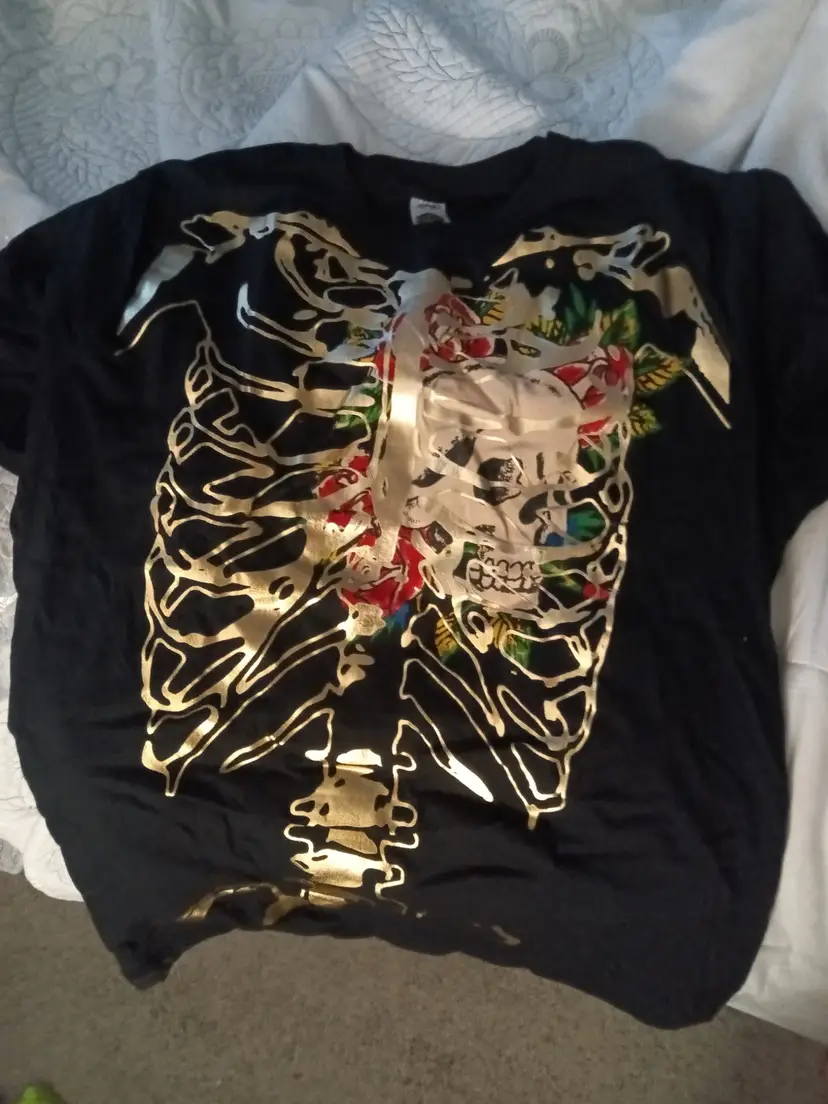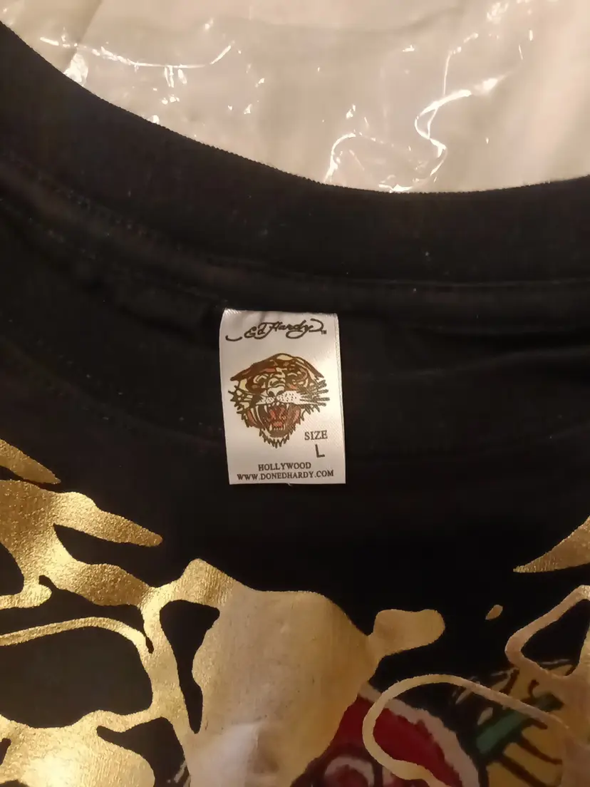 perfect ED HARDY shirt never worn new in package super cool tee with shiny gold skeleton design, perfect for making a statement. great condition, no stains.