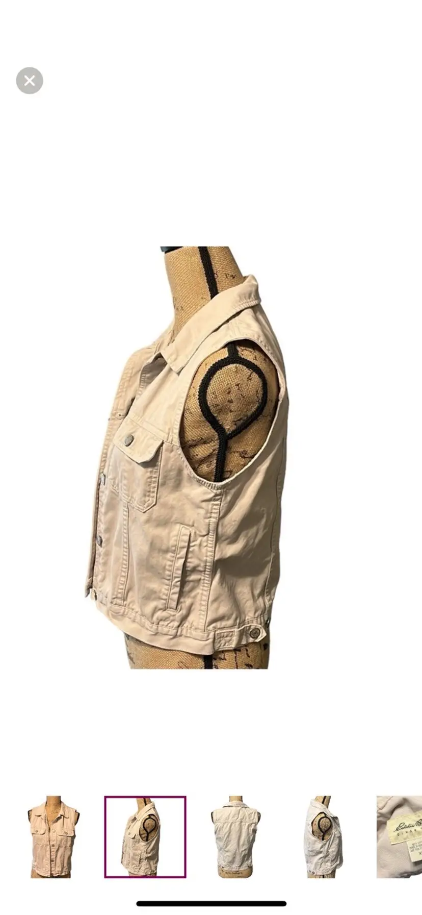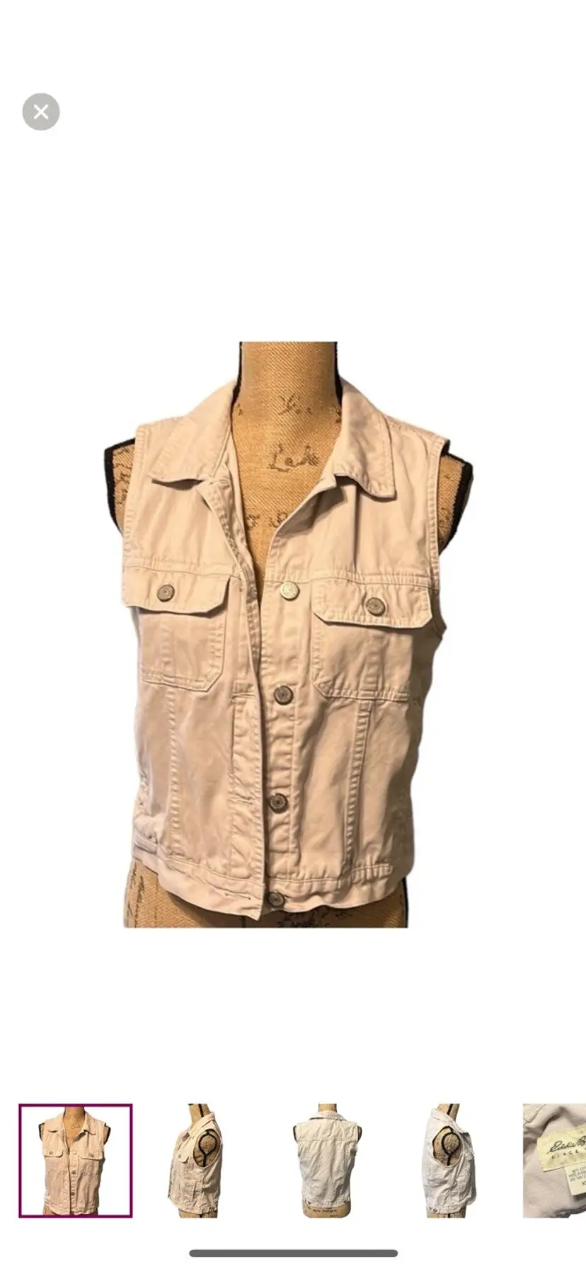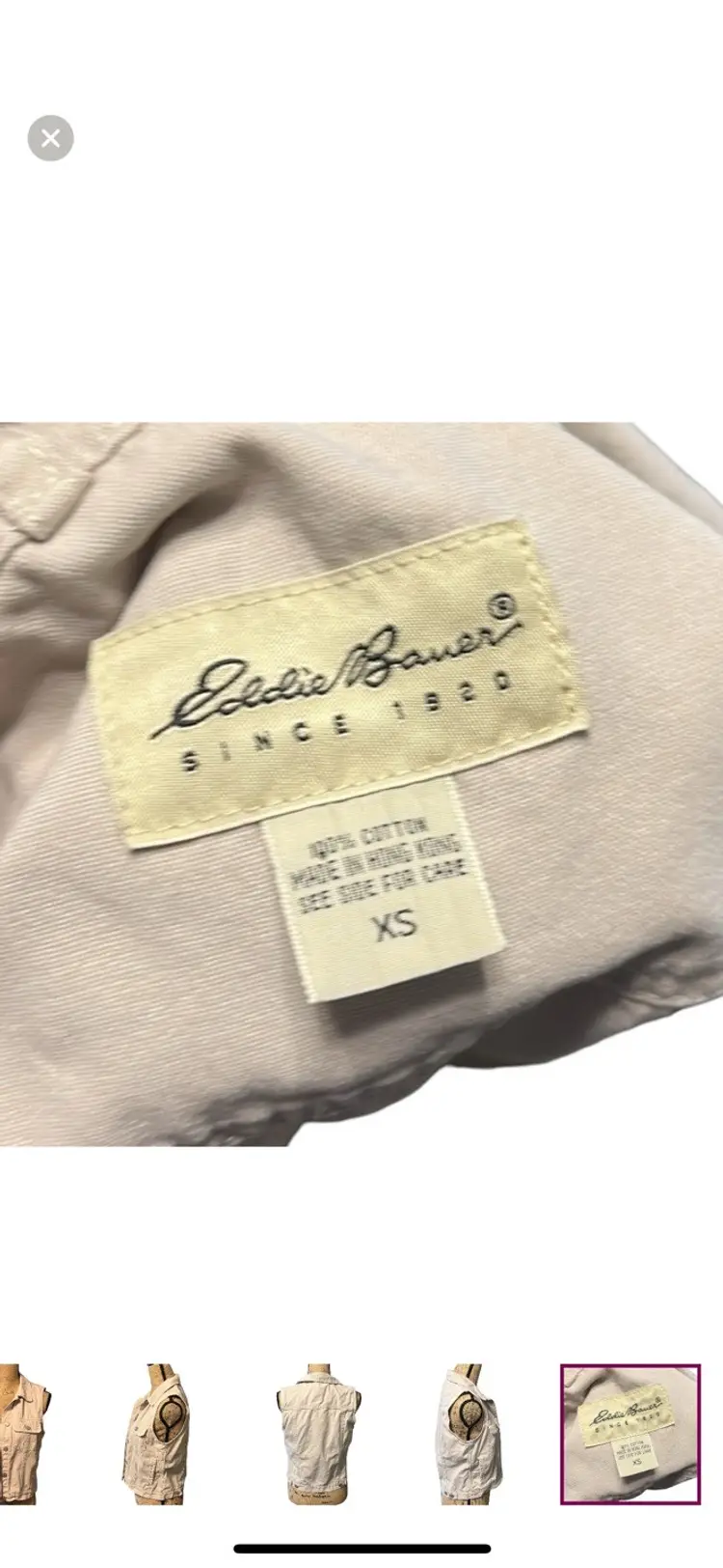 Cute and functional Eddie Bauer cargo vest with chrome buttons. Eddie Bauer size XS, 100% cotton P2P - 18" Length - 20"