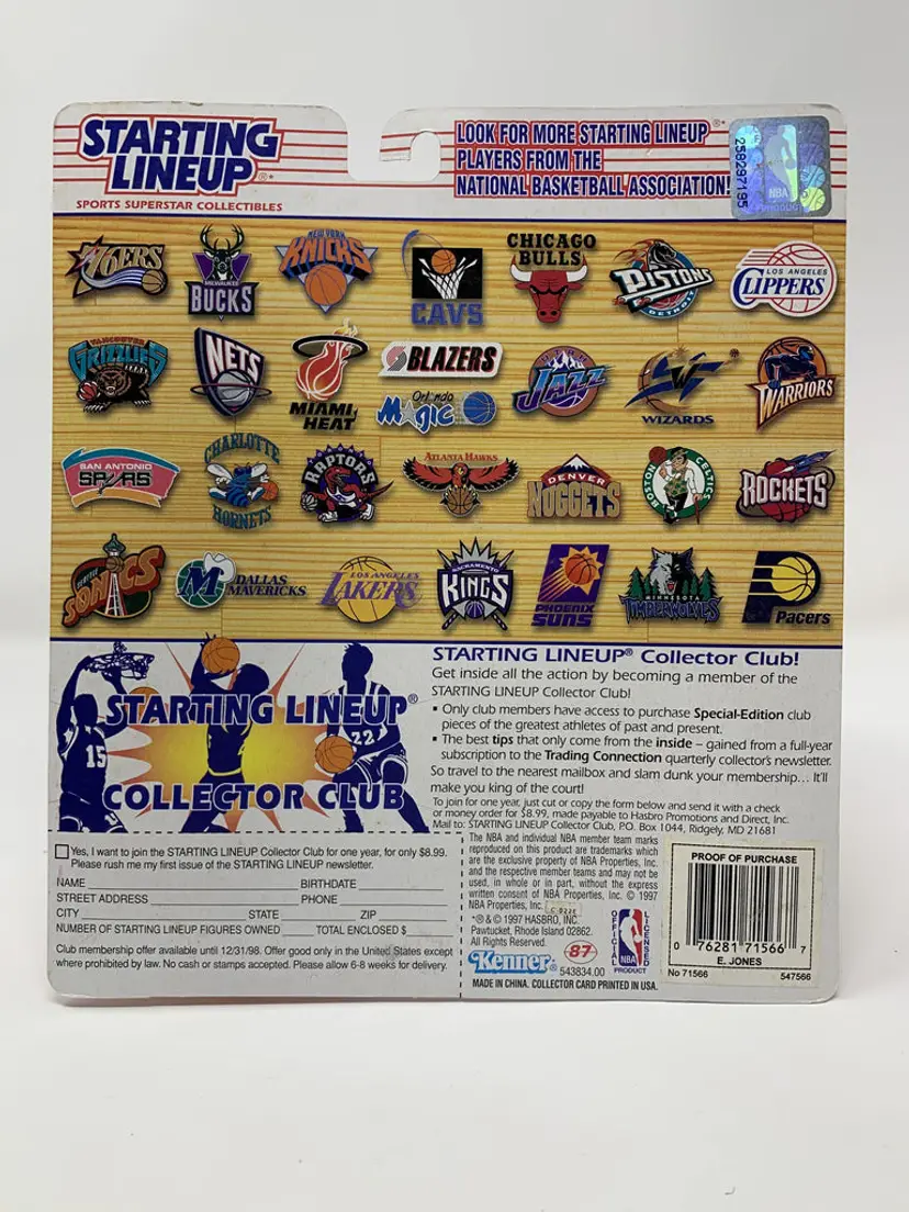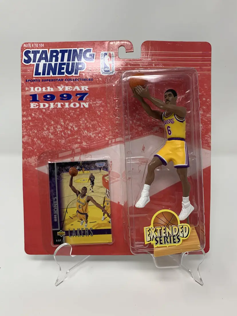 Brand New Eddie Jones Los Angeles Lakers Starting Lineup Action Figure. These were released back in 1997 by Kenner & the National Basketball Association (NBA).