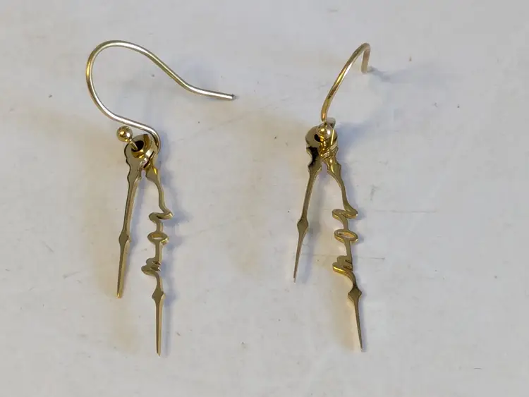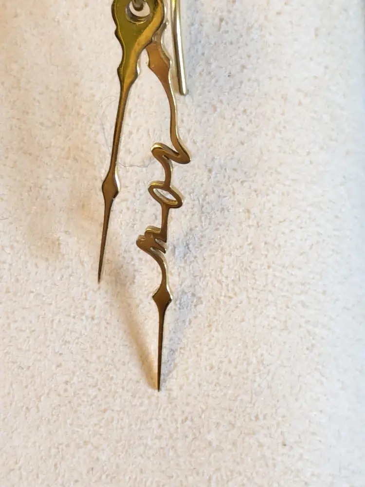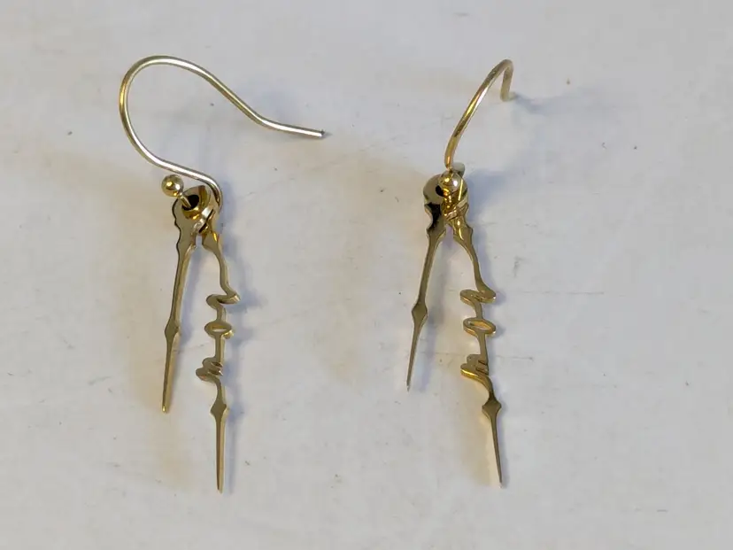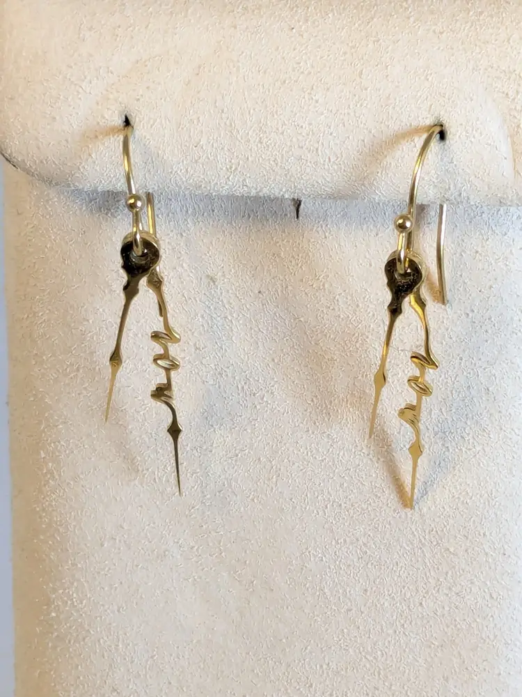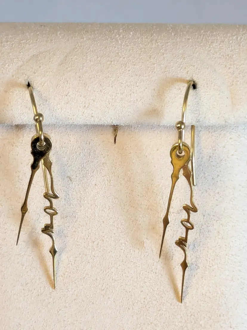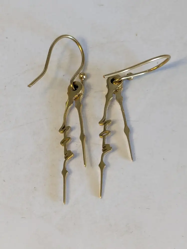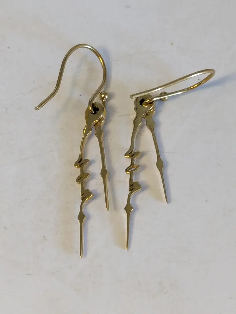 Good condition. Gold plated stainless steel pierced dangle earrings. Features the word NOW in cursive on the drop of earrings. Measures 1 1/2" in length and 1/8" wide. wen