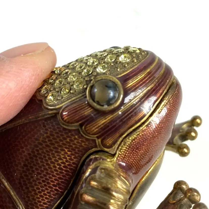 There is a damage on its eyes as noted in photos. It measures approx 1-3/8” height x 2-1/4” length x 2-3/4” width.