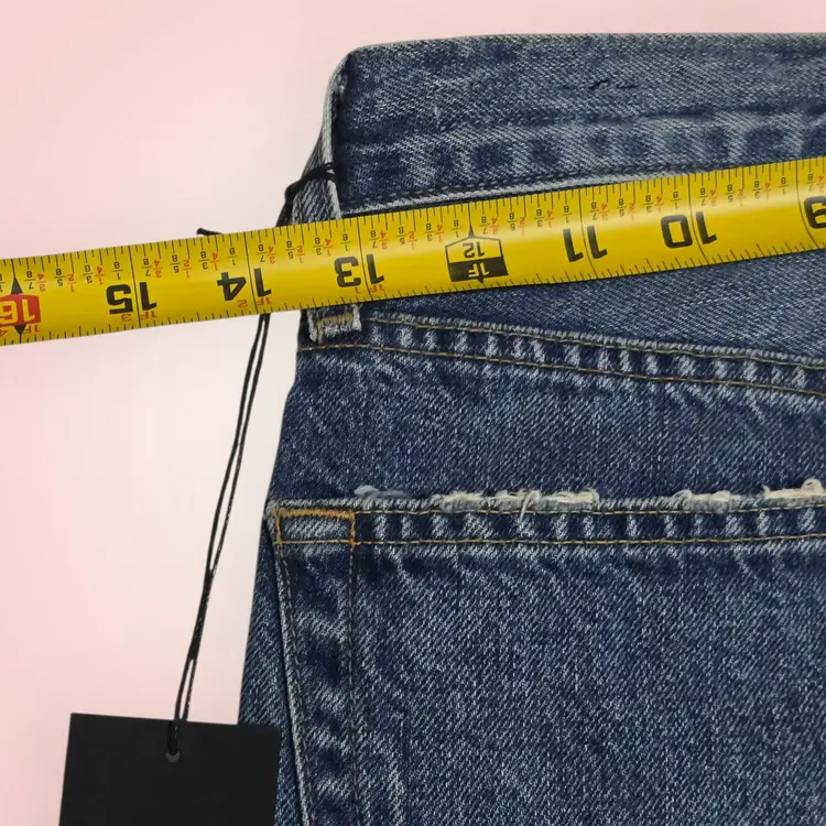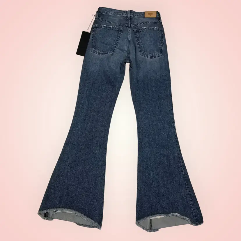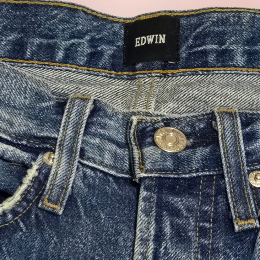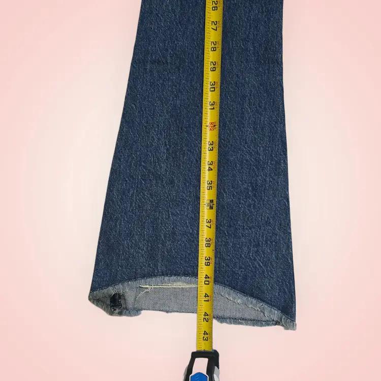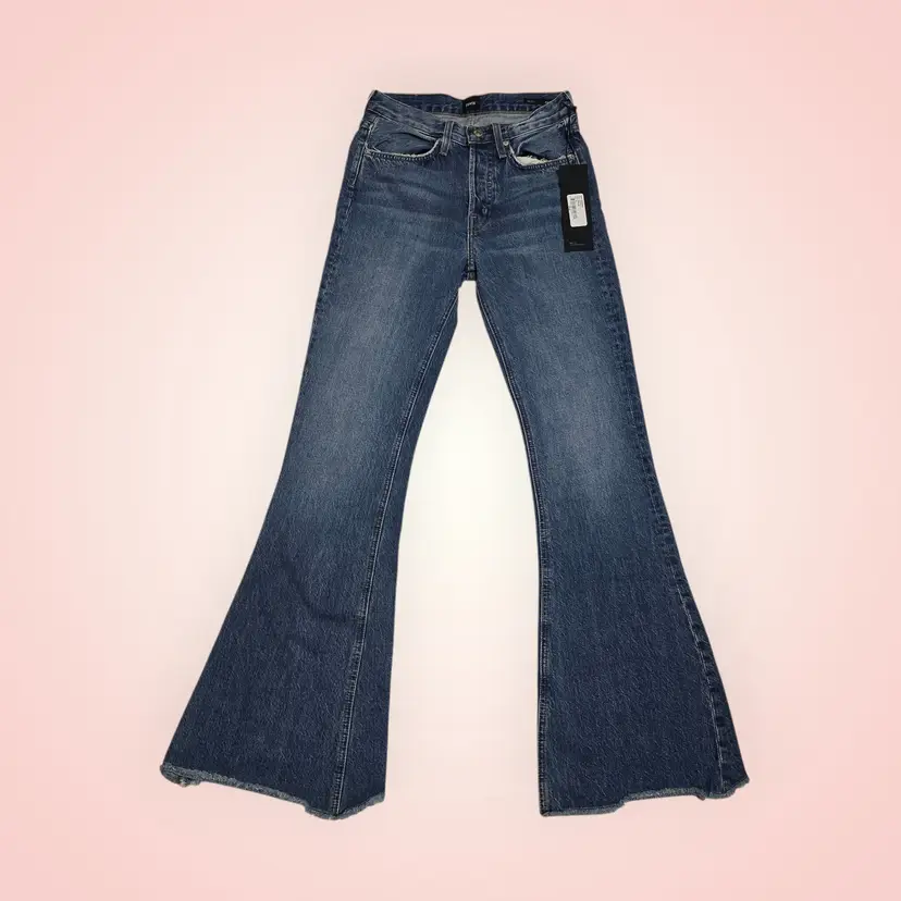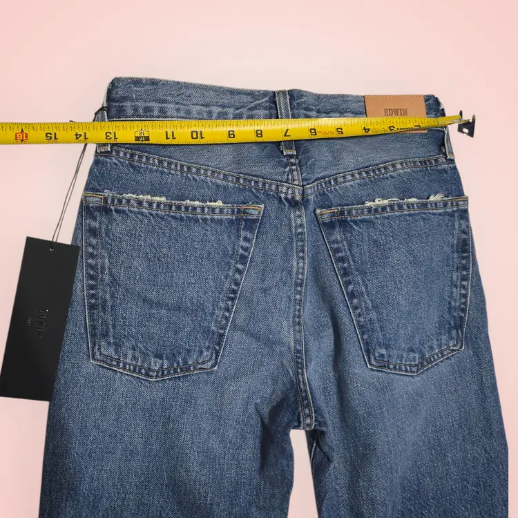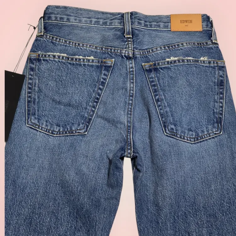 Edwin Flare Jeans Blue Distressed Chrissy Wide Flare Bootcut Womens Size 24 New