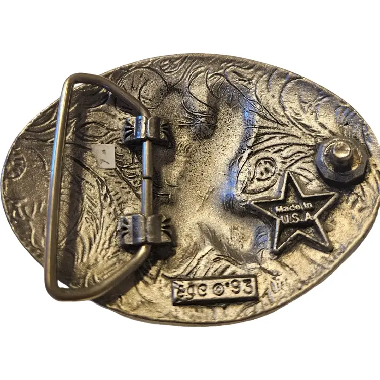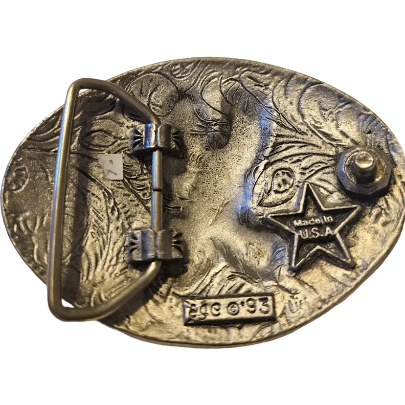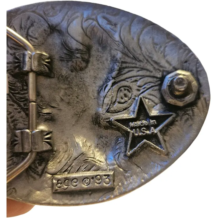 The EGE 1993 Vintage Diamond Cut Pewter Eagle Belt Buckle is a unique and original accessory made in the USA.