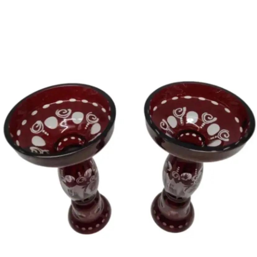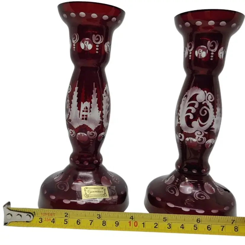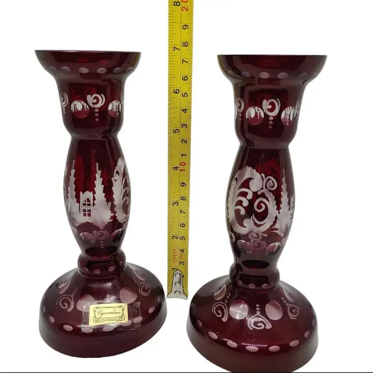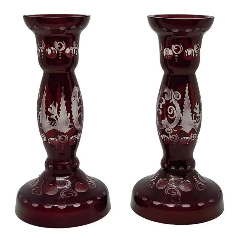 Beautiful Czech Ruby Glass Candle Holders - Great Condition!! No chips no repairs or breaks etc