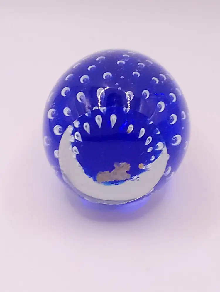 Egg shaped clear/blue controlled bubble clear bottom paperweight 3". Art glass beautiful color. No bruises or signatures