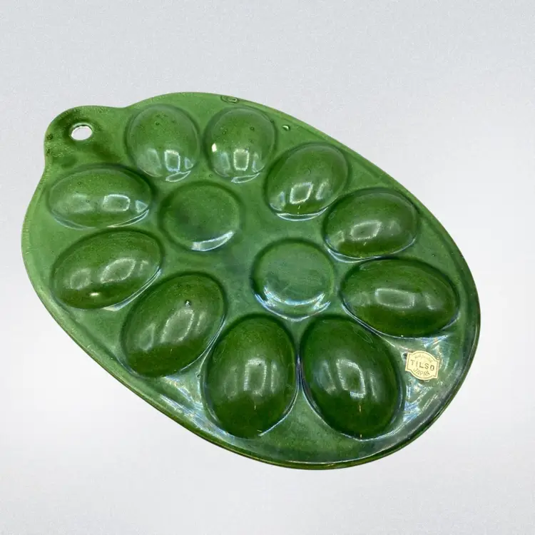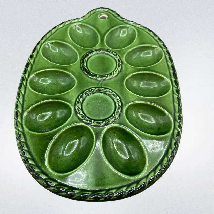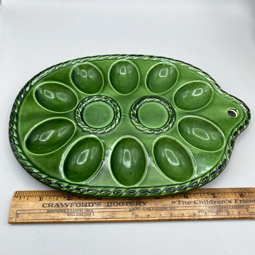 Egg Tray Green Majolica Japan CottageCore Granny Japan Tilso Retro Original Label