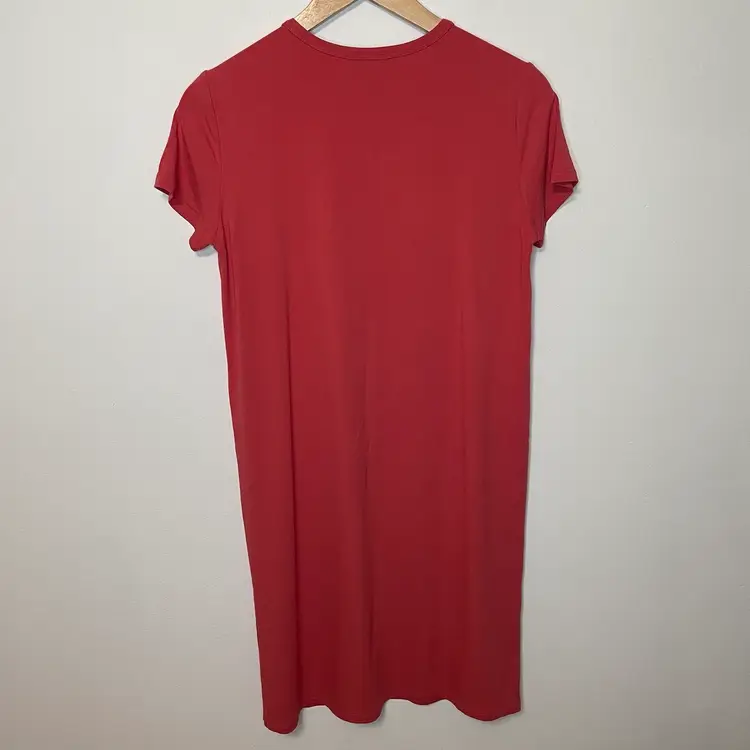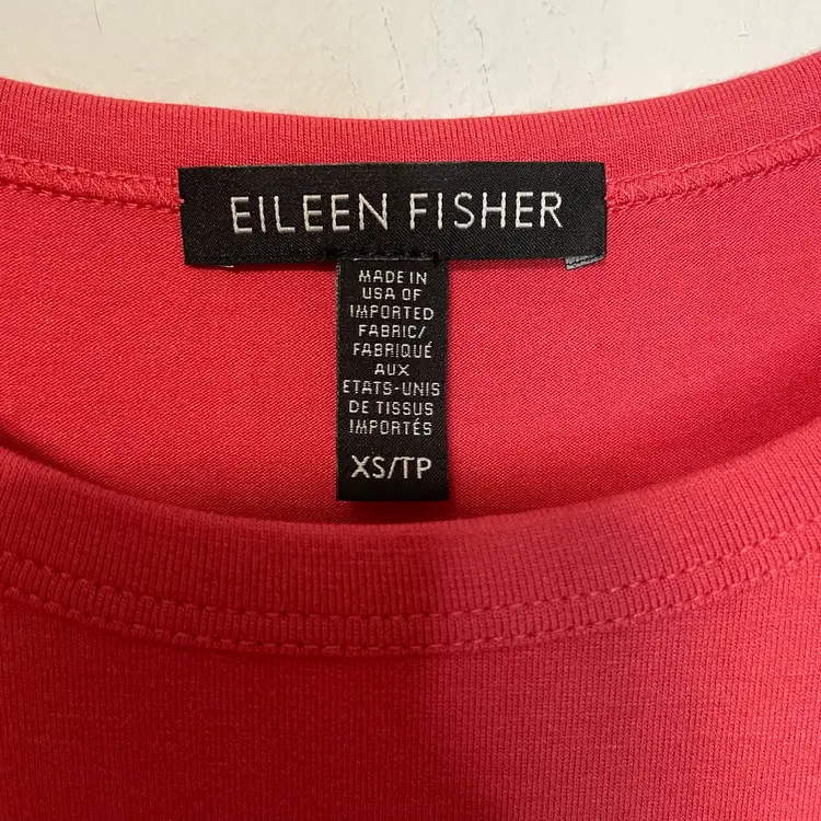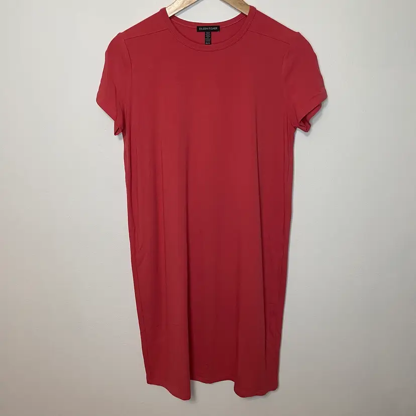 Eileen Fisher Womens Coral Pink Short Sleeve Crew Neck Knee Length Basic Shirt Dress No Flaws of Note 92% Viscose 8% Spandex Size XS Approx. Measurements: Pit to Pit: 20 Inches Length: 39.5 Inches