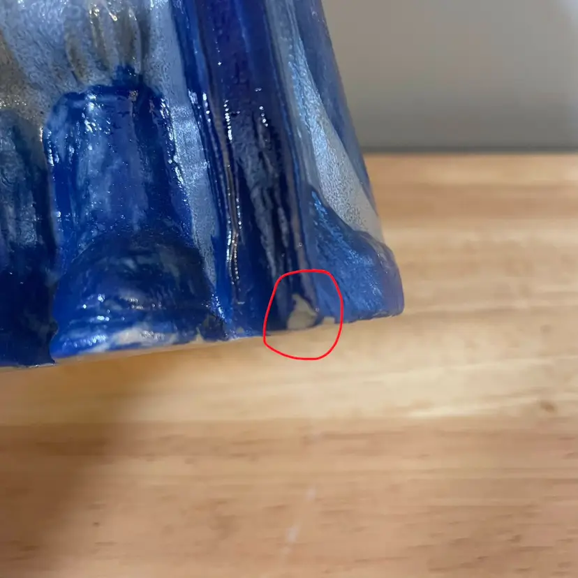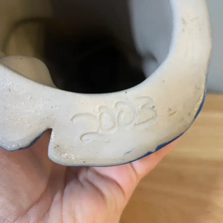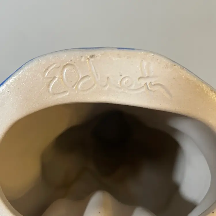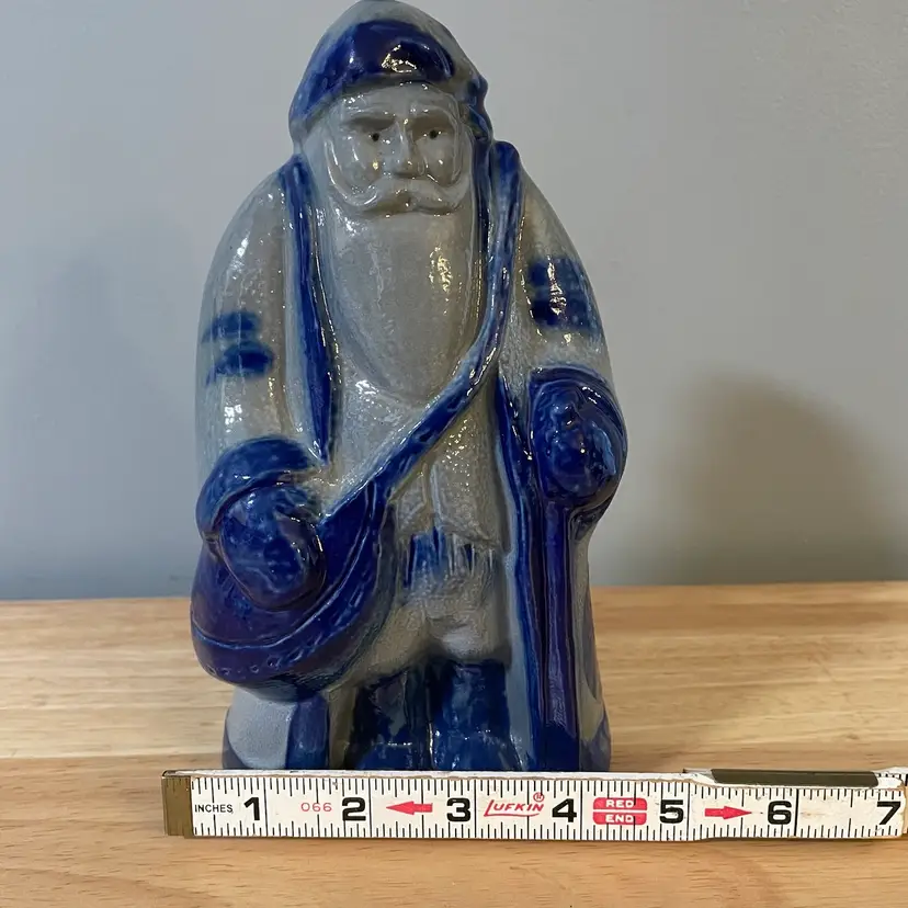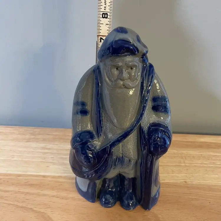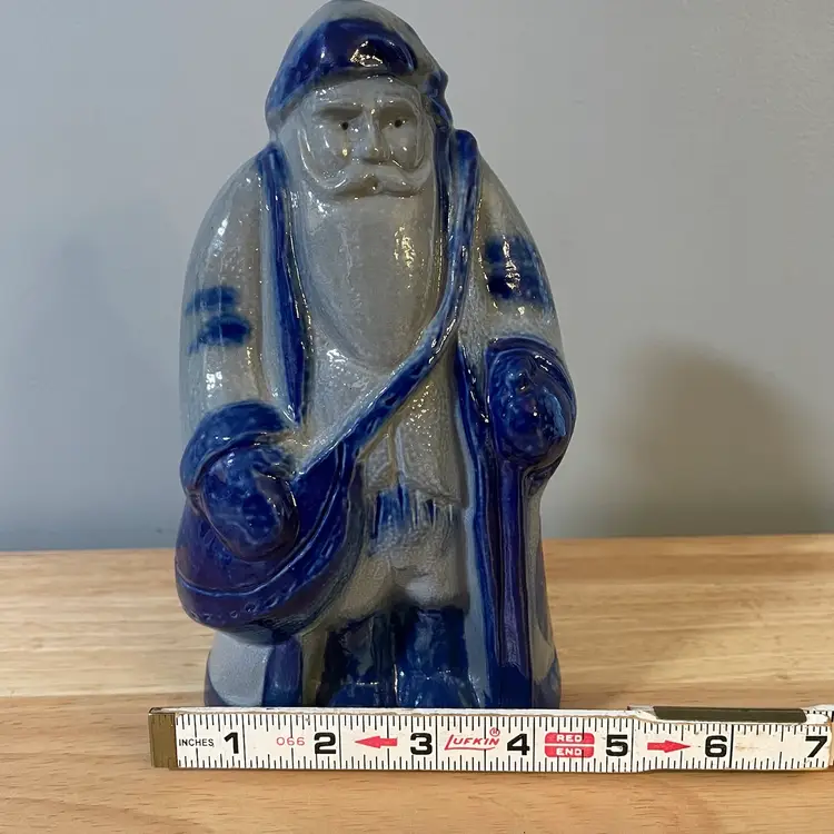 A really nice Eldreth Pottery Salt Glaze Santa. There is one flaw, a very small chip at the base that's hard to notice since it has a warn look at the bas anyway. I have it circled on the last photo. He's 8.5"tall and 5.5" wide
