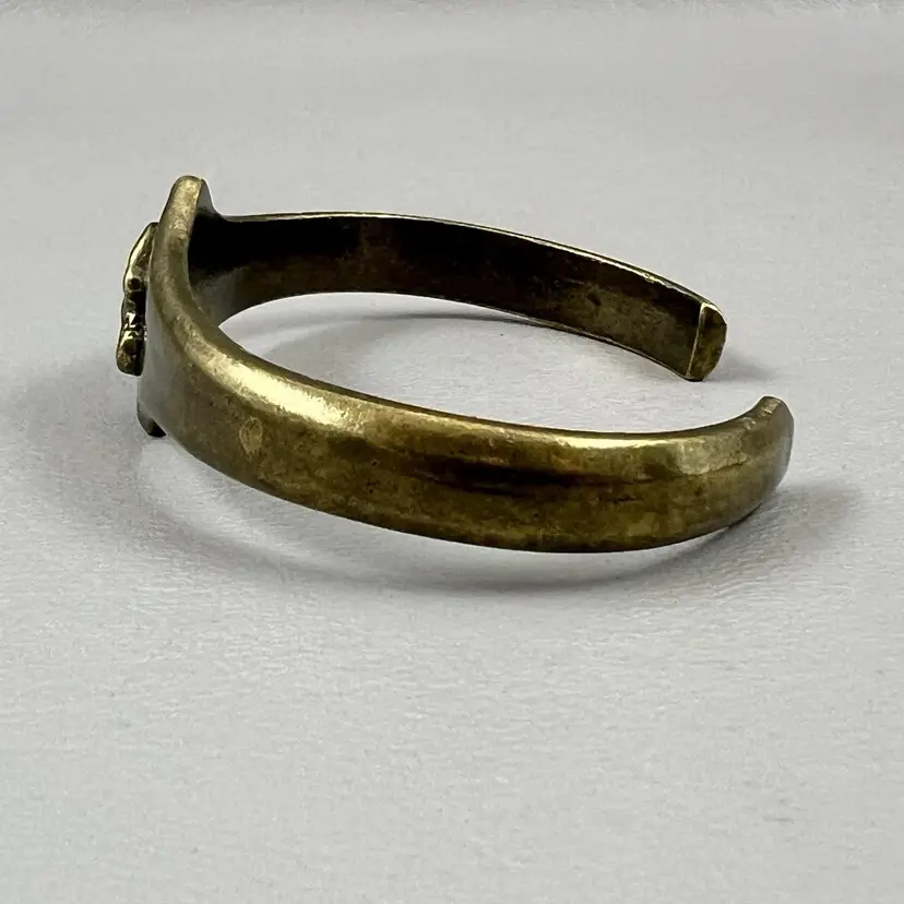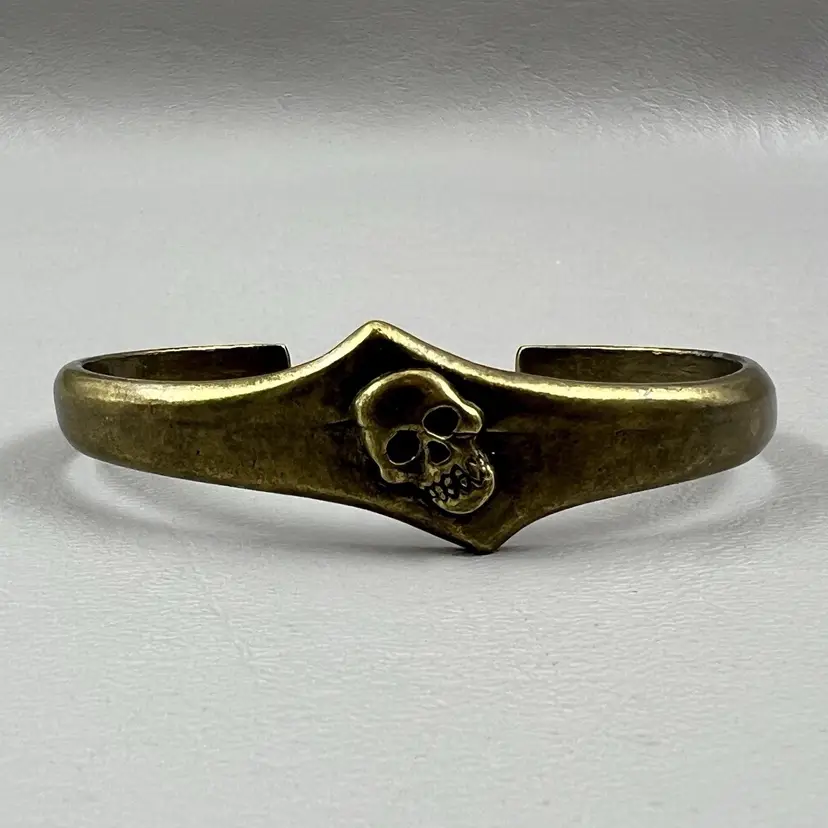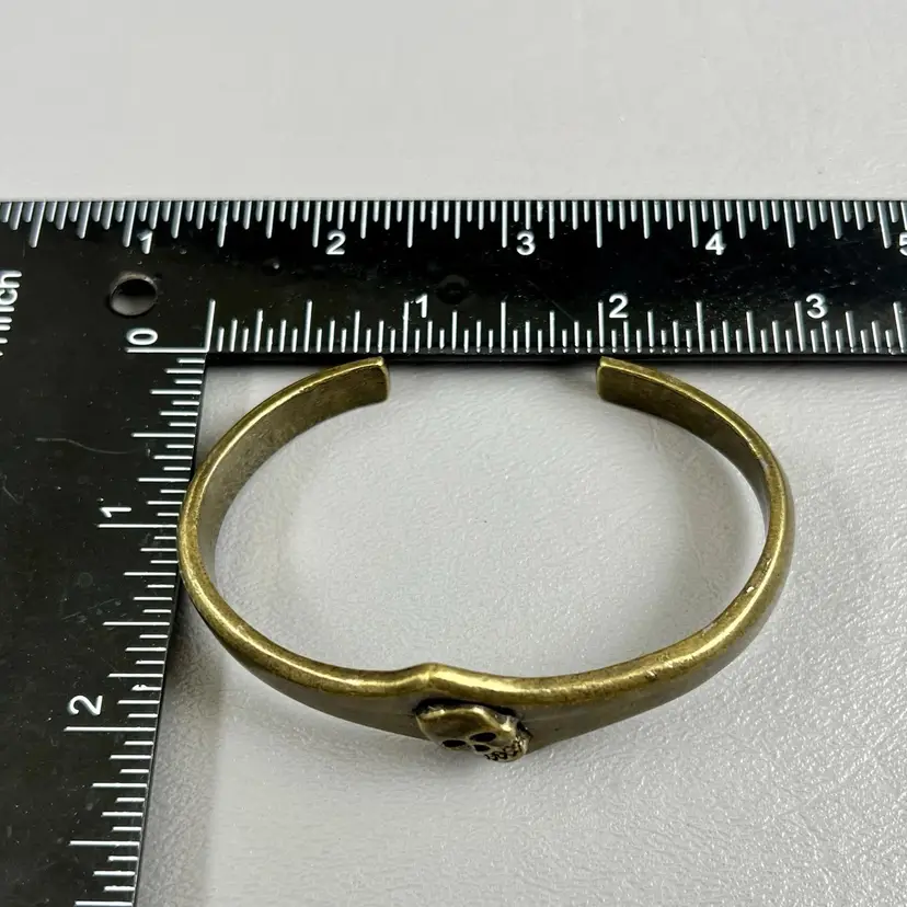 Electric America Metal Skull Cuff Bracelet Gold Tone Gothic 2X3"