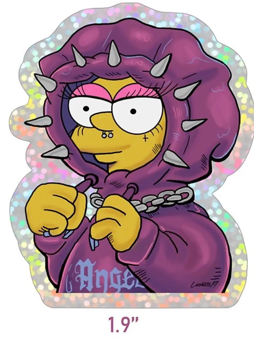 🔹 Bold personalities and urban vibes: – A stylish money hustler in Balenciaga mode 💰 – A badass Lisa Simpson in a spiked hoodie 💜 – A two-faced femme fatale on a blazing red holographic background 🔥