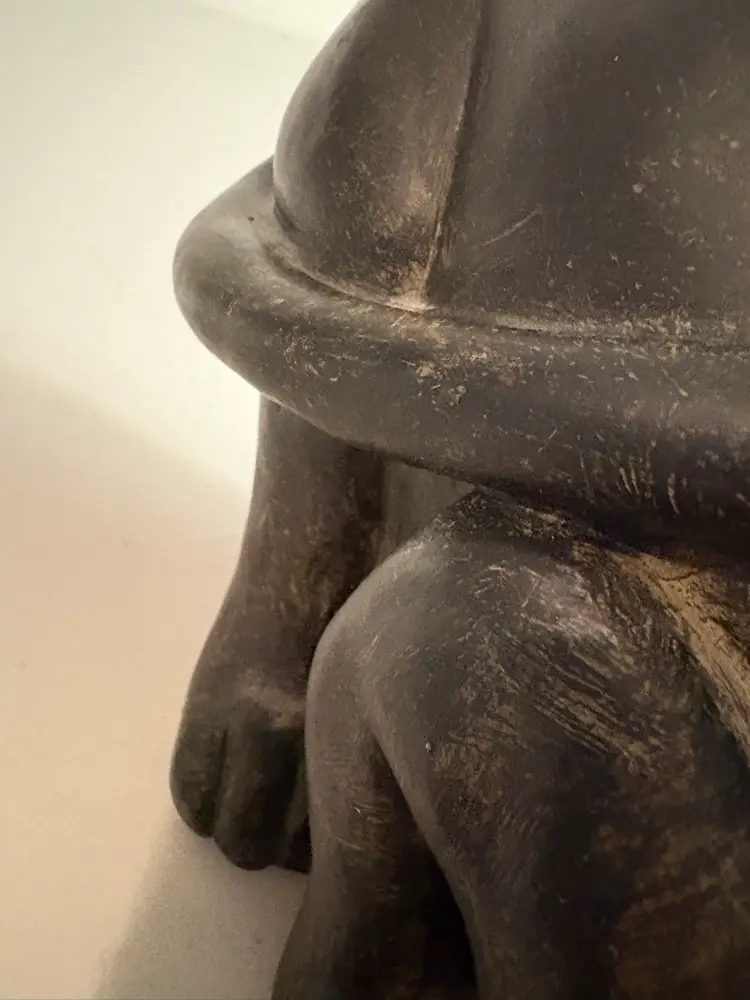 High quality light-weight resin, resembles ceramic Brown & black antiqued coloring Measures 15" L x 6" W x 11" H