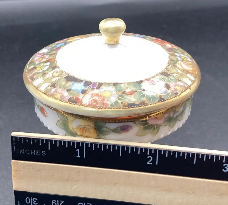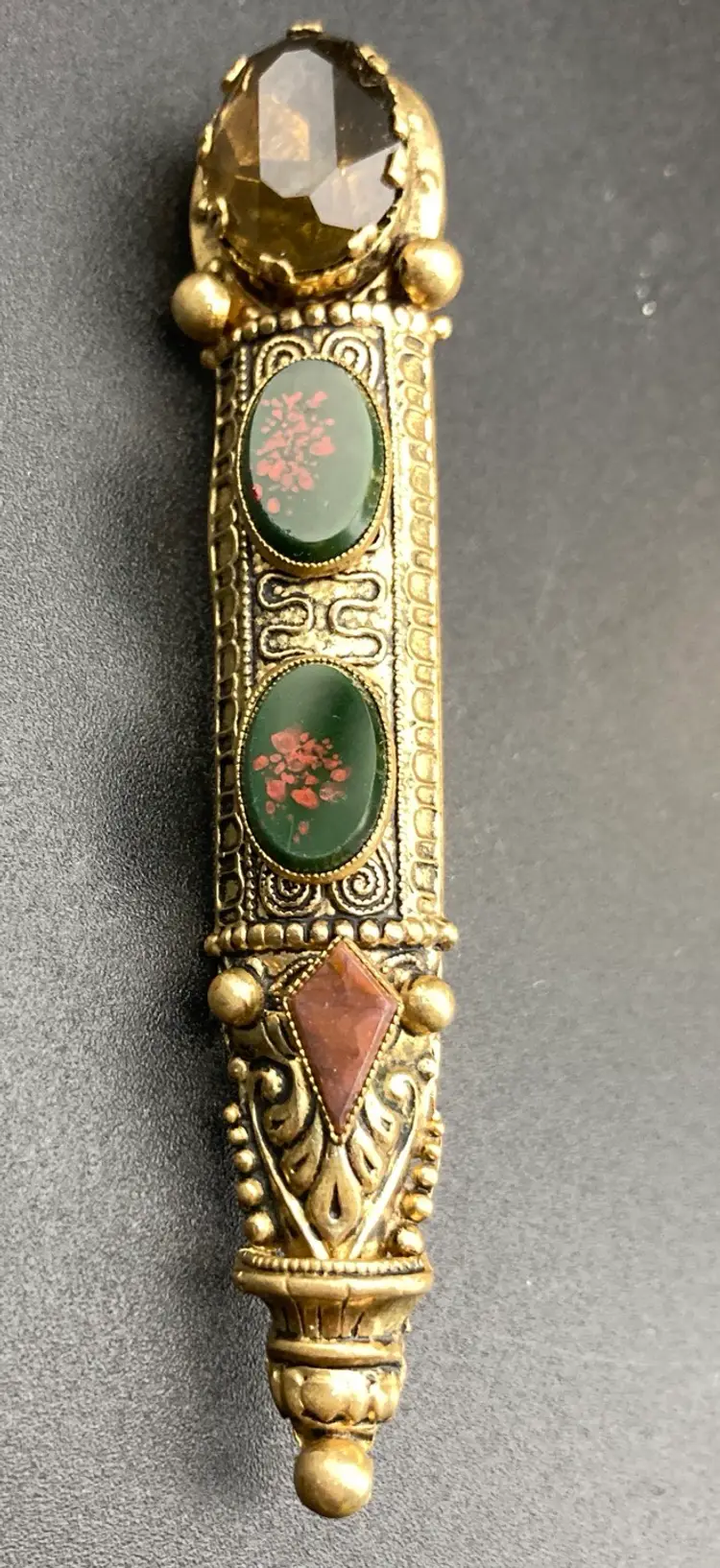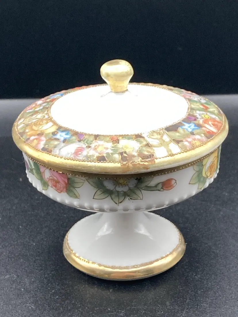 Elegant Evening Vignette! Vintage Bar Brooch Gold Tone And Glass (3 1/4” Long 1” Wide) Vintage Handpainted Nippon Miniature Compote With Lid (3” Tall 2 1/2” Diameter READ 1 Tiny Chip On Inside Of Lid) Miniature Clock Geneva Boy Quartz Japan Movement (4” Tall 1 1/4” Wide READ Needs A Battery UNTESTED Face Falls Out Easily) 2 Raku Pottery Pendants (1 3/4” x 1”) NEW to District? Enter code Michel42 into your wallet prior to your first ever purchase and save $5 off any $10 or more! Give me a Follow and I WILL Follow you back!