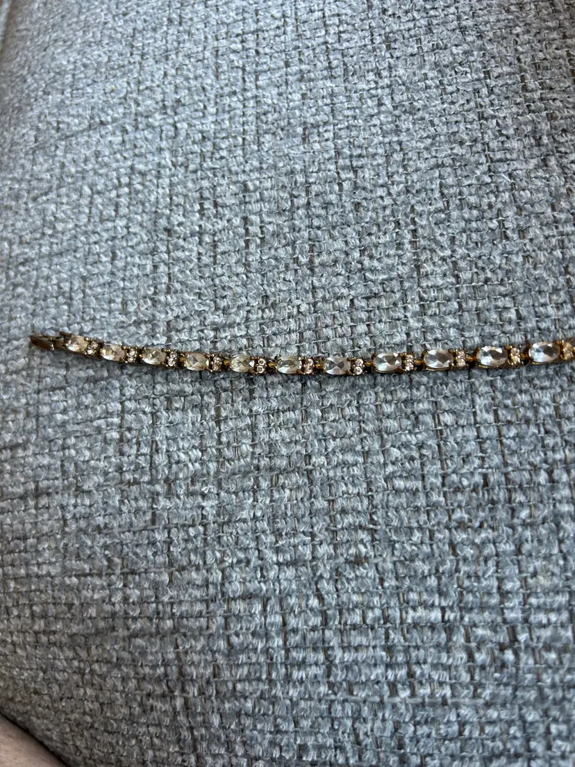 Chic gold tone bracelet with sparkling clear stones. Perfect for adding a touch of elegance to any outfit.