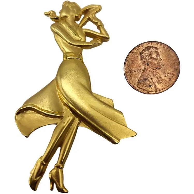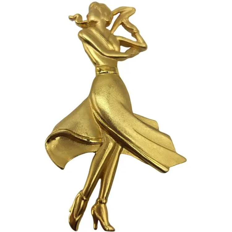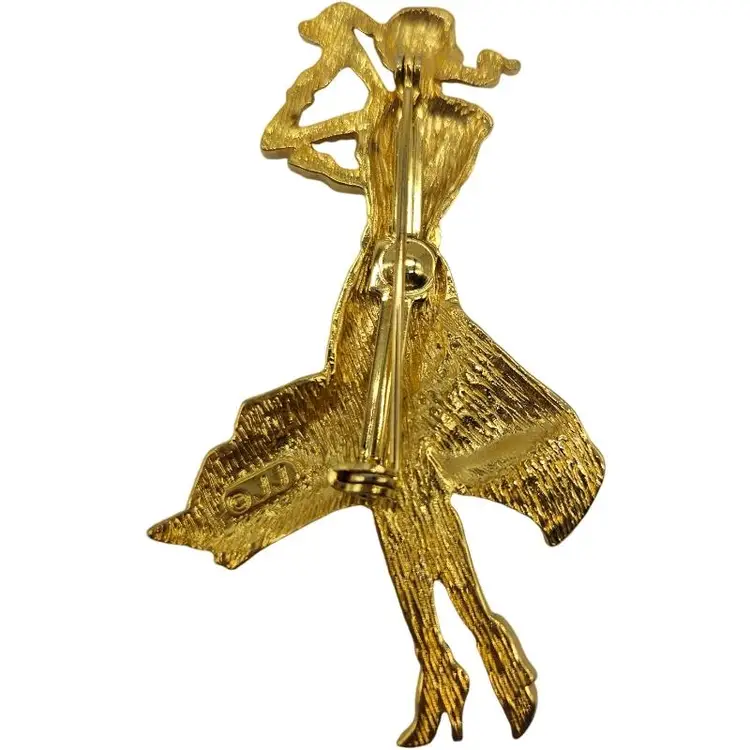 Add a touch of elegance with this gold-tone dancing woman brooch. Perfect for any occasion.
