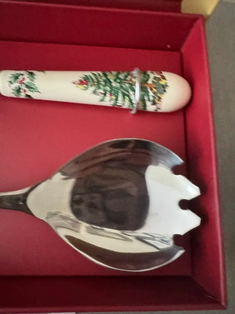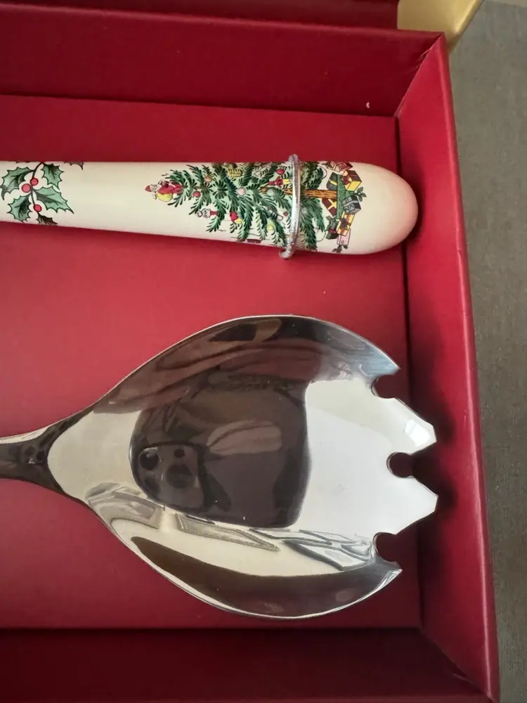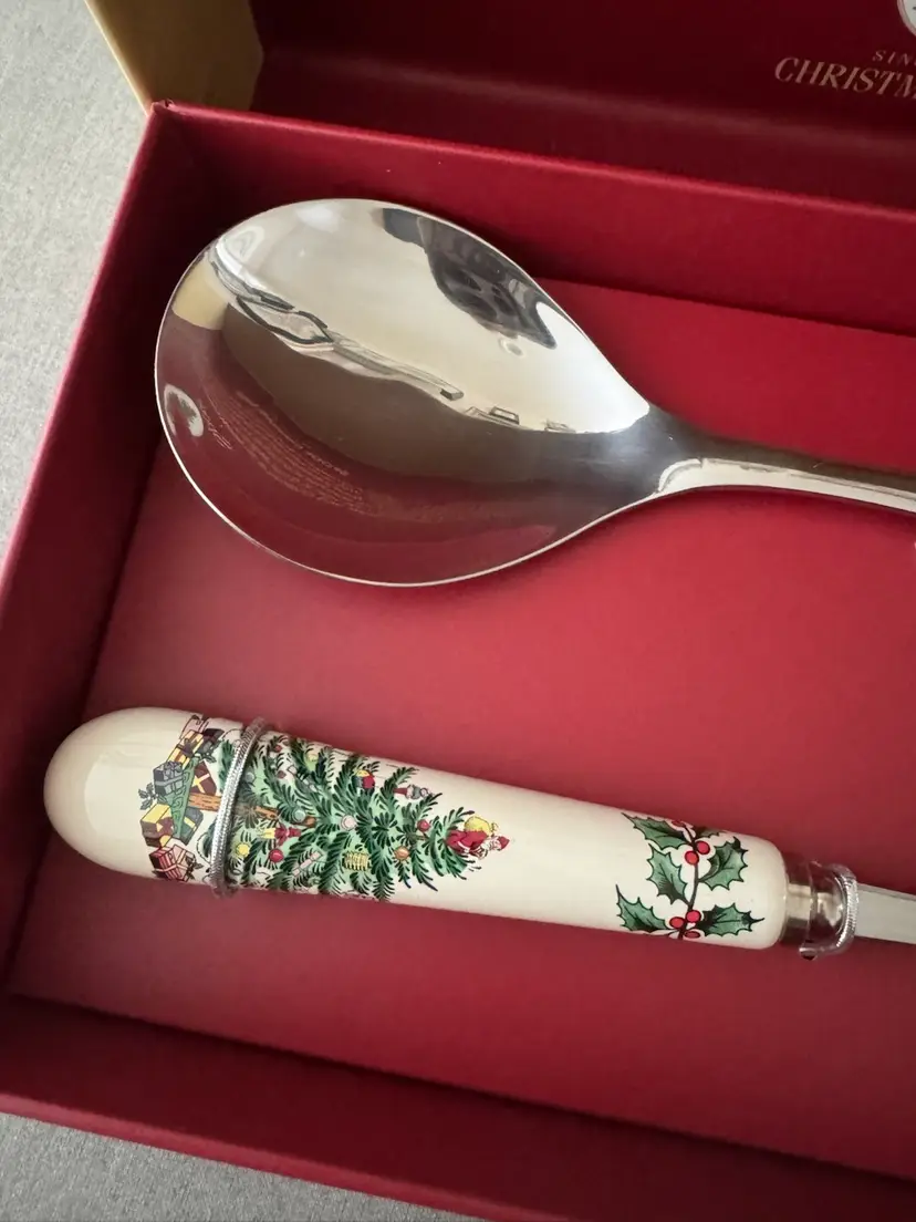 Elegant salad servers with festive Christmas tree design. Perfect for holiday gatherings. By Spode Never used In box