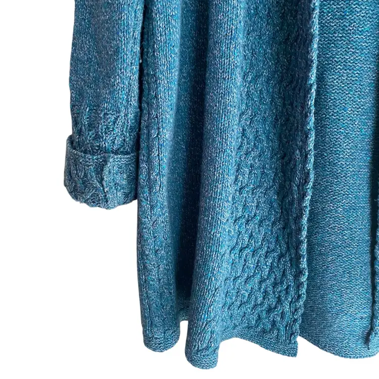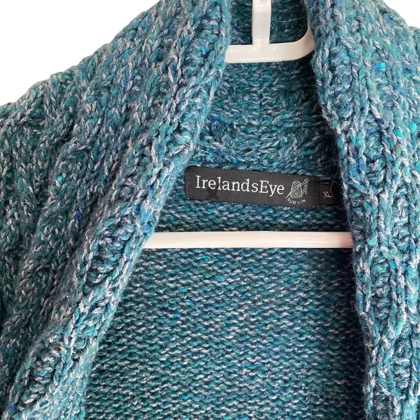Irelandseye elegant teal open front cardigan XL lambswool. Made in Ireland